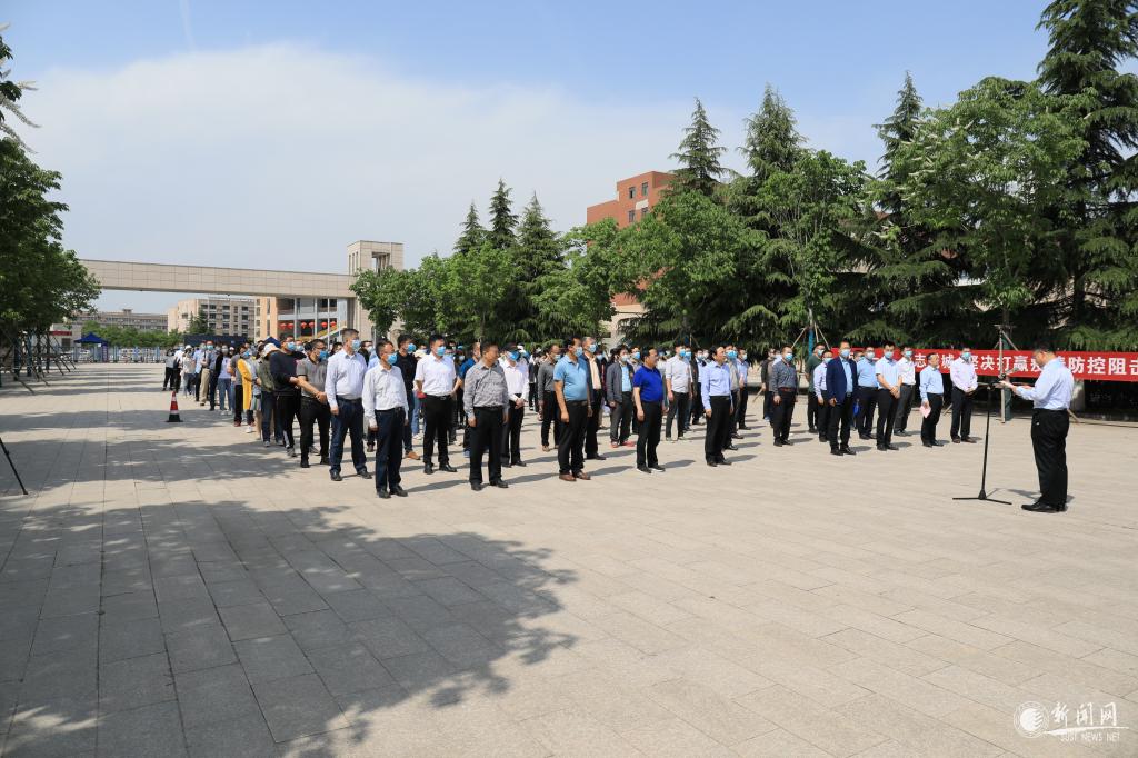 4月30日下午,我校組織開展疫情防控應(yīng)急演練,進(jìn)一步提高疫情防控和應(yīng)急處置能力,科學(xué)有效做好學(xué)生返校復(fù)學(xué)疫情防控各項(xiàng)準(zhǔn)備工作,確保師生員工身體健康和生命安全。未央湖街道辦黨工委書記張偉,未央?yún)^(qū)教育局副局長王小龍,未央?yún)^(qū)教育局保健所所長高耀明,未央?yún)^(qū)疾控中心副主任曹俊賢,校黨委書記姚書志,校長馬建中,校黨委副書記楊欲曉、王為民,副校長王學(xué)川、李志健、王海燕、李學(xué)軍,疫情防控領(lǐng)導(dǎo)小組成員單位負(fù)責(zé)人全程觀摩演練。教務(wù)處、學(xué)工部、研工部、后勤集團(tuán)、保衛(wèi)處等相關(guān)部門100余參演人員參加演練。校黨委副書記王道安主持演練啟動儀式。