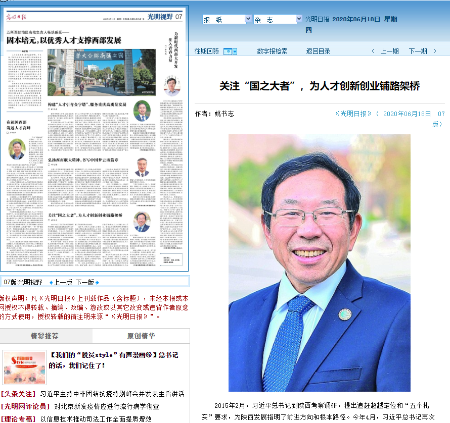 《光明日報(bào)》06月18日“光明視野”刊發(fā)我校黨委書記姚書志署名文章《關(guān)注“國之大者”,為人才創(chuàng)新創(chuàng)業(yè)鋪路架橋》,闡述了陜西科技大學(xué)踐行“西遷精神”,大力實(shí)施人才強(qiáng)校戰(zhàn)略,以精神凝聚人、以事業(yè)吸引人、以政策激勵(lì)人、以環(huán)境鼓舞人,廣納四海英才,引導(dǎo)和激勵(lì)師生積極投身新時(shí)代西部大開發(fā),在祖國最需要的地方建新功、立新業(yè)。