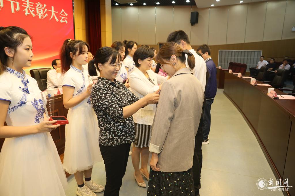 在熱烈的氣氛中,與會校領(lǐng)導(dǎo)向2019年度優(yōu)秀教師及先進工作者頒發(fā)榮譽證書。