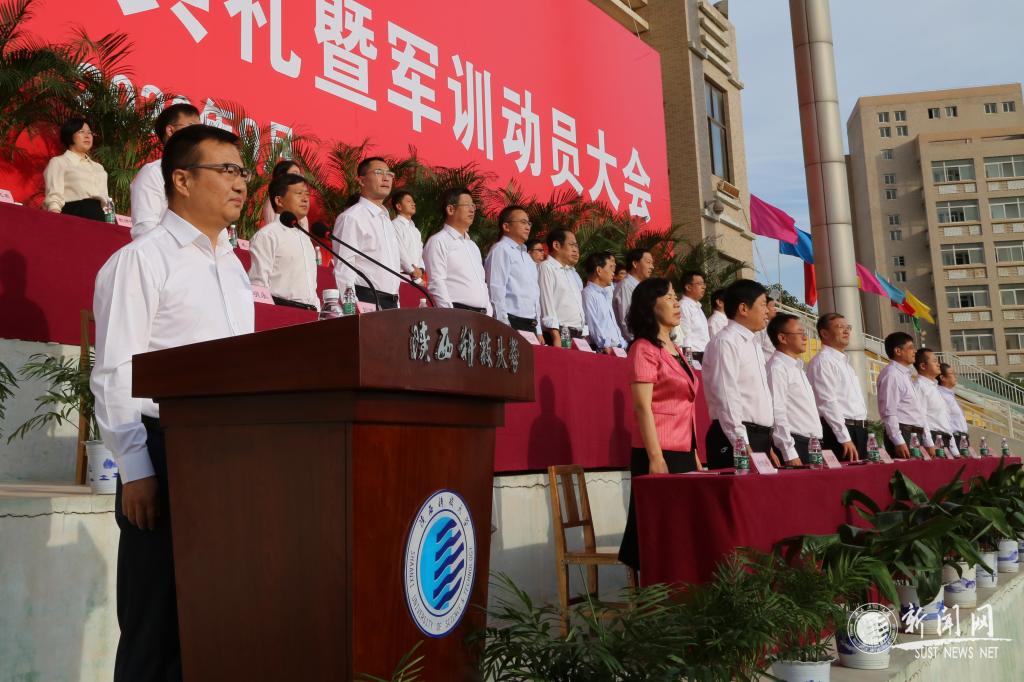 金風(fēng)送爽,碧空如洗,九月的科大涌動(dòng)著青春的熱潮。9月16日,我校2020級(jí)新生開學(xué)典禮暨軍訓(xùn)動(dòng)員大會(huì)在標(biāo)準(zhǔn)田徑場(chǎng)舉行。校長李志健,校黨委副書記、紀(jì)委書記、監(jiān)察專員王為民,副校長王學(xué)川、王海燕、李學(xué)軍,總會(huì)計(jì)師徐曉峰,校長助理鄭恩讓,各院系及有關(guān)職能部門負(fù)責(zé)人、教師代表和學(xué)生代表齊聚一堂,見證6000余名學(xué)子成為“新陜科大人”的光榮一刻。大會(huì)由校黨委副書記楊欲曉主持。