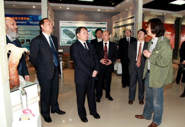 簽約活動(dòng)之前,部分與會(huì)領(lǐng)導(dǎo)和嘉賓參觀了我校校史展覽館、校區(qū)沙盤模型以及設(shè)計(jì)與藝術(shù)學(xué)院、資源與環(huán)境學(xué)院、材料科學(xué)與工程學(xué)院特色展室。