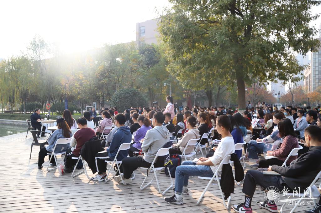 11月11日下午,風(fēng)景秀麗的科大湖畔,秋光絢麗,波光粼粼。陜西科技大學(xué)黨委書記姚書志做客材料科學(xué)與工程學(xué)院“湖畔講堂”,以“恰同學(xué)少年,以夢為馬,正崢嶸歲月,不負(fù)韶華”為題,與青年大學(xué)生暢談理想信念,用親切質(zhì)樸的語言和鮮活風(fēng)趣的故事,為我校150余位大學(xué)生上了一堂“有黨性、有景色、有余香”的思政課。