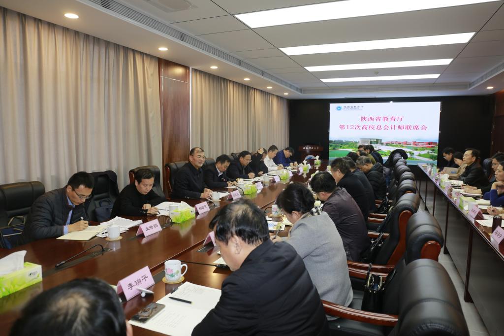 11月27日下午,陜西省教育廳第12次高??倳嫀熉?lián)席會議在我校逸夫樓506會議室召開。陜西科技大學校長李志健,陜西省財政廳總會計師、一級巡視員習云杰,陜西省教育廳副廳長劉寶平出席會議并講話。我校總會計師徐曉峰和12所陜西省屬本科高校、高職院校總會計師,陜西省財政廳教科文處、財務處相關(guān)負責人參加了會議。會議由教育廳財務處處長楊盛濤主持。