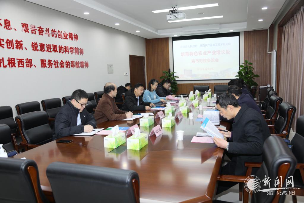 12月9日,商洛市副市長李育江,市農(nóng)業(yè)農(nóng)村局局長劉清民、副局長洪亮等一行5人來校調(diào)研,并參加設(shè)在我校的陜西農(nóng)產(chǎn)品加工技術(shù)研究院組織召開的“培育特色農(nóng)業(yè)產(chǎn)業(yè)增長極”院市對接交流會。校長李志健會見了李育江一行,雙方就開展校企合作助推商洛市區(qū)域特色產(chǎn)業(yè)高質(zhì)量發(fā)展進(jìn)行了深入交流。副校長黃劍鋒、食品學(xué)院主要負(fù)責(zé)人參加了對接交流會,會議由農(nóng)研院常務(wù)副院長陳雪峰主持。