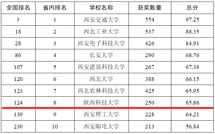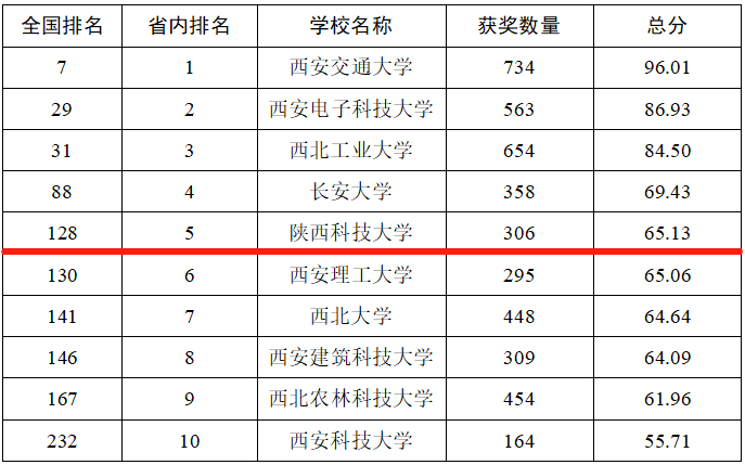 陜西入圍部分高校排名情況統(tǒng)計表