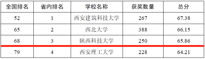 陜西入圍高校排名情況統(tǒng)計表