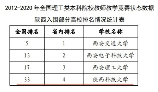 在《2012-2020年全國(guó)理工類本科院校教師教學(xué)競(jìng)賽狀態(tài)數(shù)據(jù)》中,我校排名全國(guó)第33位,位居陜西省高校第4位。