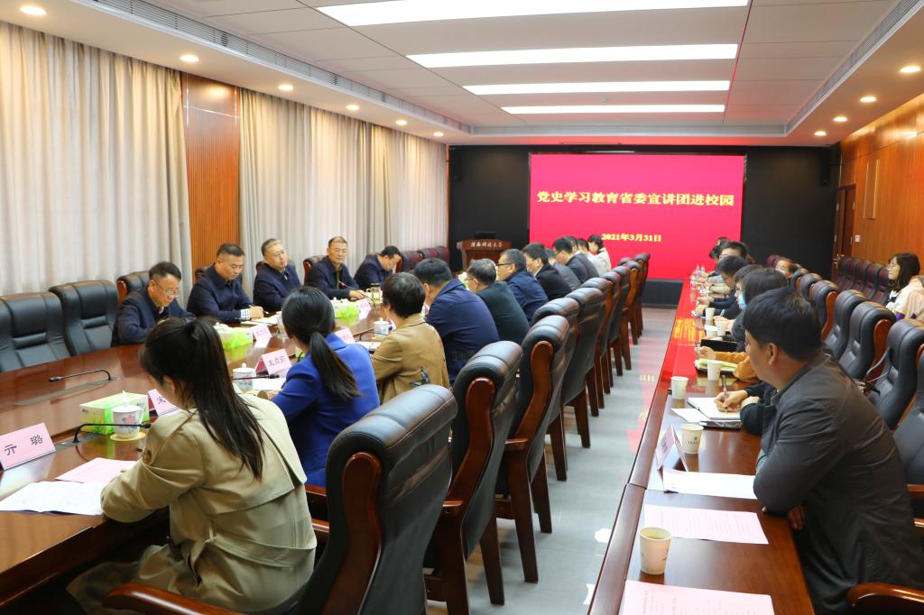 3月31日,黨史學(xué)習(xí)教育省委宣講團(tuán)走進(jìn)我校舉行宣講。省委宣講團(tuán)成員、陜西省委黨校延安精神研究中心主任畢遠(yuǎn)佞教授作宣講報(bào)告,校黨委書(shū)記姚書(shū)志主持宣講會(huì)。校領(lǐng)導(dǎo)、校長(zhǎng)助理,校黨委委員,各單位處級(jí)干部,馬克思主義學(xué)院教師,輔導(dǎo)員,學(xué)生代表參加了宣講會(huì)。