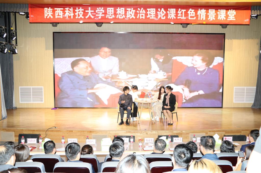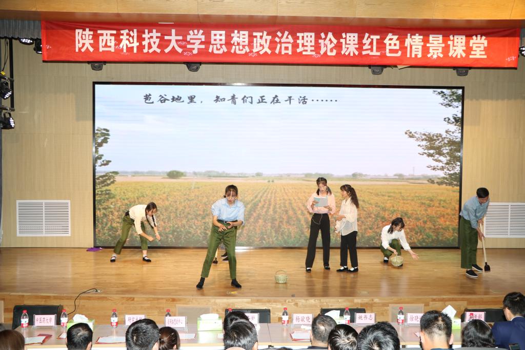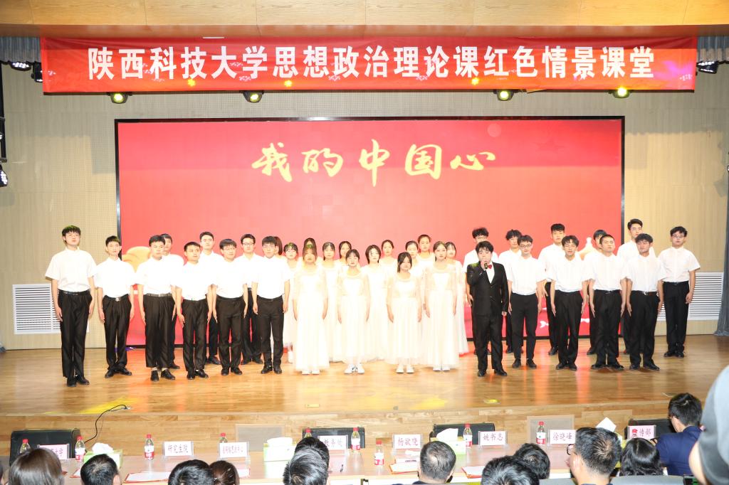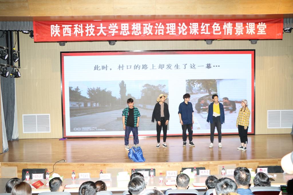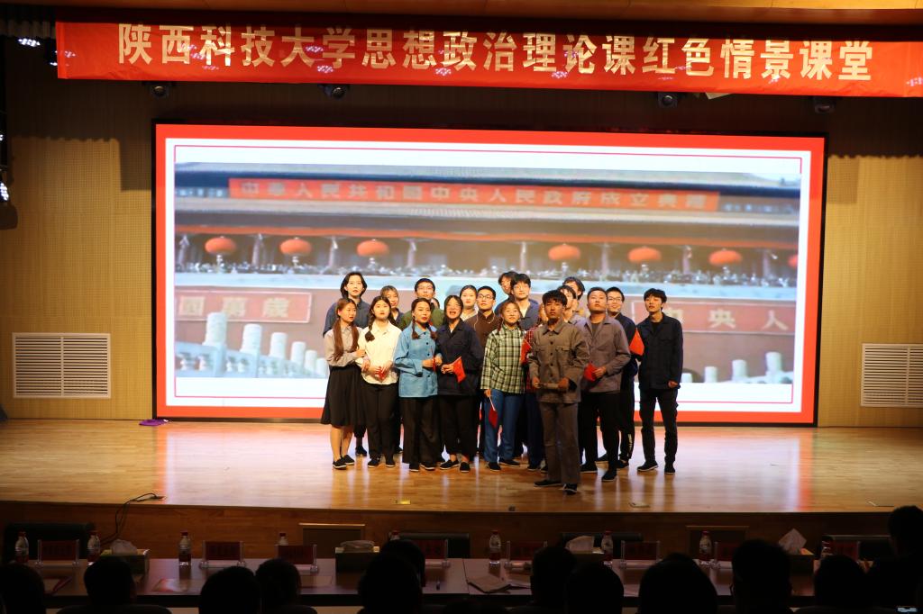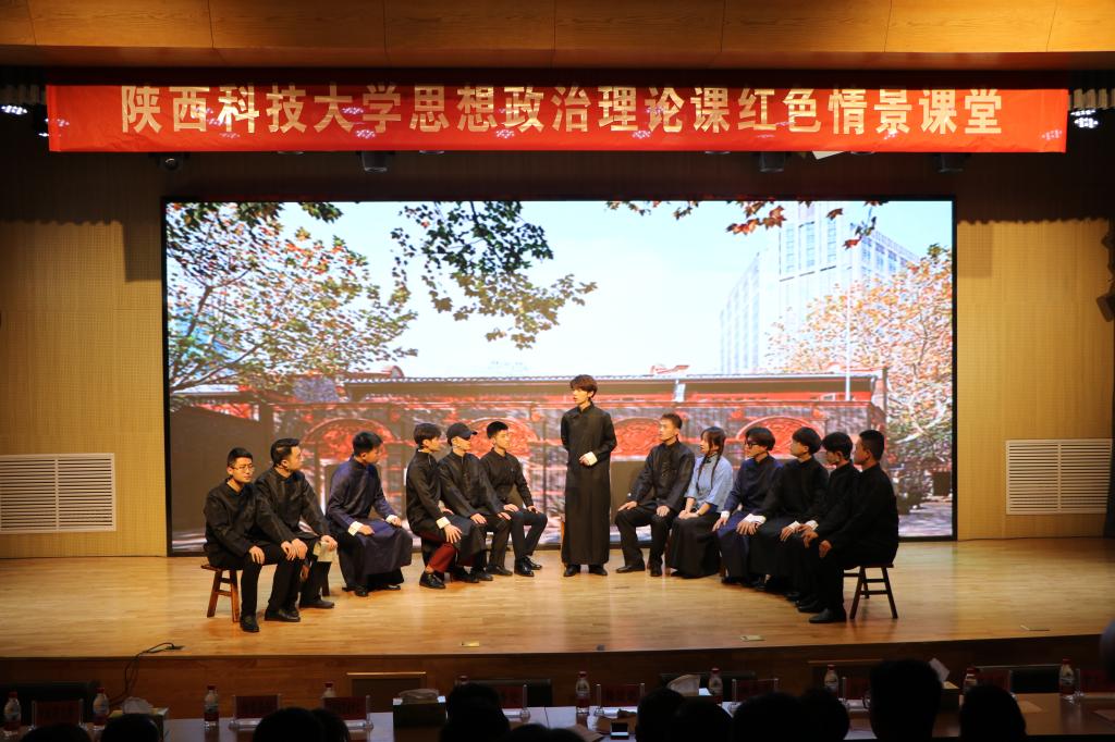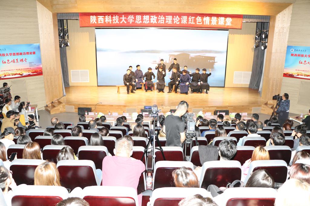 這是陜西科技大學(xué)“學(xué)黨史、跟黨走、建強國”主題紅色情景課堂上的一幕,4月29日晚,該校數(shù)百名青年學(xué)子自編、自導(dǎo)、自演了《開天辟地》《星火燎原》《英雄史詩》《豐衣足食》《新的紀元》《兩彈元勛》《春天腳步》《百年團聚》《中國力量》《人間奇跡》《不忘初心》等11幕紅色情景劇,通過演唱、舞蹈、朗誦、情景劇等方式串起中共一大、井岡山會師、萬里長征、軍民大生產(chǎn)、開國大典、改革開放、香港回歸等百年黨史中的11個大事件,引導(dǎo)師生以“第一人稱”“沉浸式”學(xué)黨史,向黨的百年華誕獻禮。校黨委書記姚書志、副書記楊欲曉,總會計師徐曉峰來到學(xué)校設(shè)藝學(xué)院小劇場,與學(xué)校25000余名師生一起在線上、線下觀看演出,同上一堂思政課。