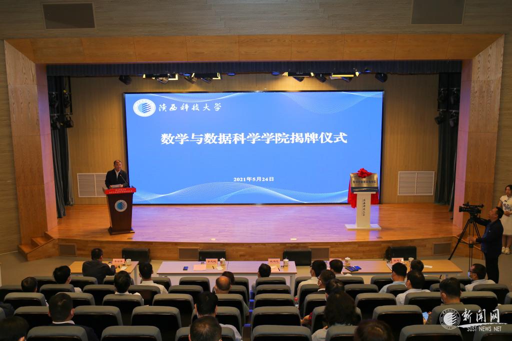 5月24日,陜西科技大學數(shù)學與數(shù)據(jù)科學學院揭牌儀式在人文樓小劇場舉行。校黨委書記姚書志,校長李志健,副校長蒲永平出席大會,陜西國家應用數(shù)學中心常務副主任、陜西省數(shù)學會常務副理事長孫建永到會祝賀。副校長李學軍主持會議。