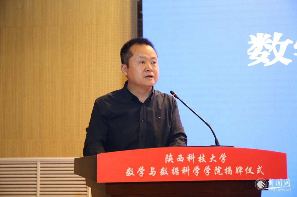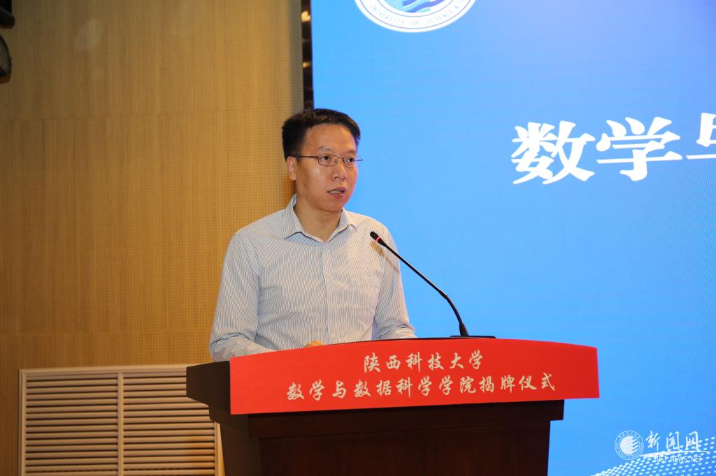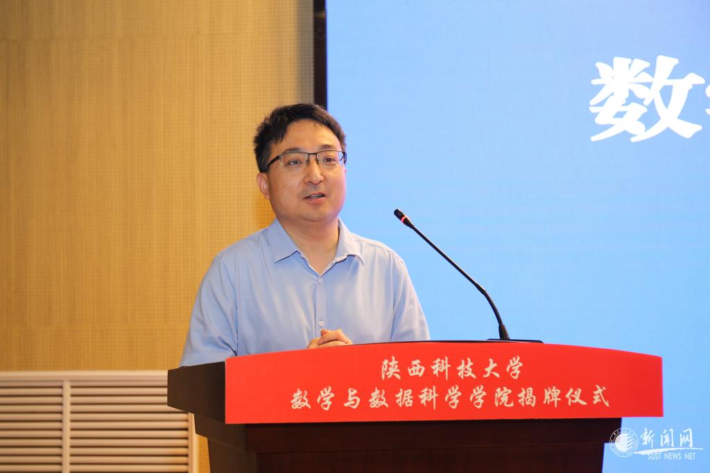 孫建永代表陜西國家應用數(shù)學中心、陜西省數(shù)學會致賀詞。他指出,數(shù)學與數(shù)據(jù)科學學院的成立是陜西科技大學數(shù)學學科辦學實力的具體體現(xiàn),是學校支持數(shù)學學科發(fā)展的關鍵舉措,是學校貫徹落實國家強基戰(zhàn)略的重要實踐,對學校數(shù)學學科發(fā)展具有里程碑意義。他祝愿,數(shù)學與數(shù)據(jù)科學學院早日成為西部地區(qū)乃至全國培養(yǎng)高端數(shù)學人才的重要基地,為國家建設、區(qū)域發(fā)展做出新的更大的貢獻。