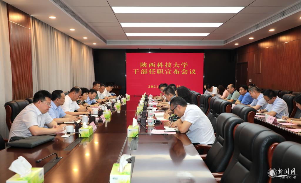 省委教育工委、省教育廳人事處處長申雪峰宣讀任職決定:郭強(qiáng)同志任陜西科技大學(xué)黨委委員、副書記。