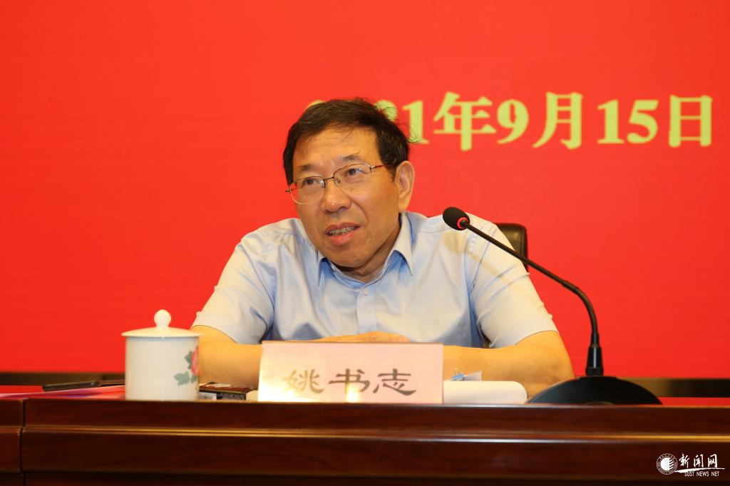 姚書志就進一步聚焦聚力高質(zhì)量發(fā)展,推進學(xué)校黨建工作再上新臺階提出了三點工作要求。一是以學(xué)習(xí)習(xí)近平總書記“七一”重要講話為指引,落實落細第27次全國高校黨的建設(shè)工作會議精神。要把講話精神作為下半年黨史學(xué)習(xí)教育的核心內(nèi)容,全面學(xué)、系統(tǒng)學(xué)、深入學(xué),真正做到學(xué)深悟透、融會貫通、運用自如;要落實好意識形態(tài)工作責(zé)任制,守正創(chuàng)新做好高校思想政治工作,加快配齊建強高校專職思政課教師、專職輔導(dǎo)員隊伍,各二級單位主要負責(zé)人要切實擔(dān)負起領(lǐng)導(dǎo)責(zé)任,帶頭講黨課,推動學(xué)習(xí)貫徹工作走深走實;堅持黨建引領(lǐng)高質(zhì)量發(fā)展,力克黨建業(yè)務(wù)“兩張皮”,要緊緊圍繞事業(yè)發(fā)展,把加強黨建工作融入貫穿“一流”建設(shè)全過程。二是要以新時代高校黨建示范創(chuàng)建和質(zhì)量創(chuàng)優(yōu)“雙創(chuàng)”工作為抓手,推動高校黨建工作再上新臺階。要在2018年學(xué)校入選首批陜西高校黨建“雙創(chuàng)”示范高校的基礎(chǔ)上,在校級層面“爭突破”、在學(xué)院層面“保入選”、在支部層面“再拓展”,不斷提升校黨委領(lǐng)導(dǎo)力,強化院系黨組織建設(shè),不斷提高全校各級黨組織的組織力、凝聚力、創(chuàng)造力和戰(zhàn)斗力。三是要強化責(zé)任意識,樹牢底線思維,切實維護校園安全穩(wěn)定。要扎實做好學(xué)校防疫各項工作,對維護校園安全穩(wěn)定作出周密部署、系統(tǒng)安排;各部門各負其責(zé),全力做好開學(xué)準備,做好“十四運”服務(wù)保障和學(xué)生返校之間的各項銜接工作,統(tǒng)籌安排好學(xué)生宿舍搬遷等具體工作;全力以赴做好“十四運”服務(wù)保障工作。為來校演職人員提供細致周到、舒心方便的生活服務(wù),為十四運成功舉辦貢獻陜科大力量。