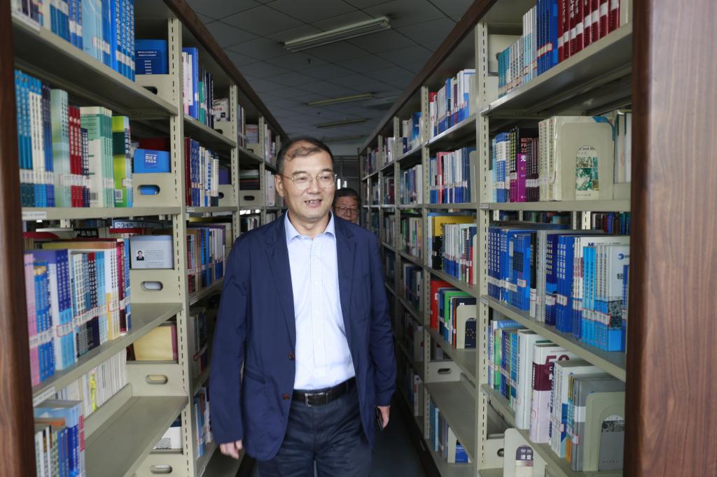 校長李志健在圖書館書庫檢查工作