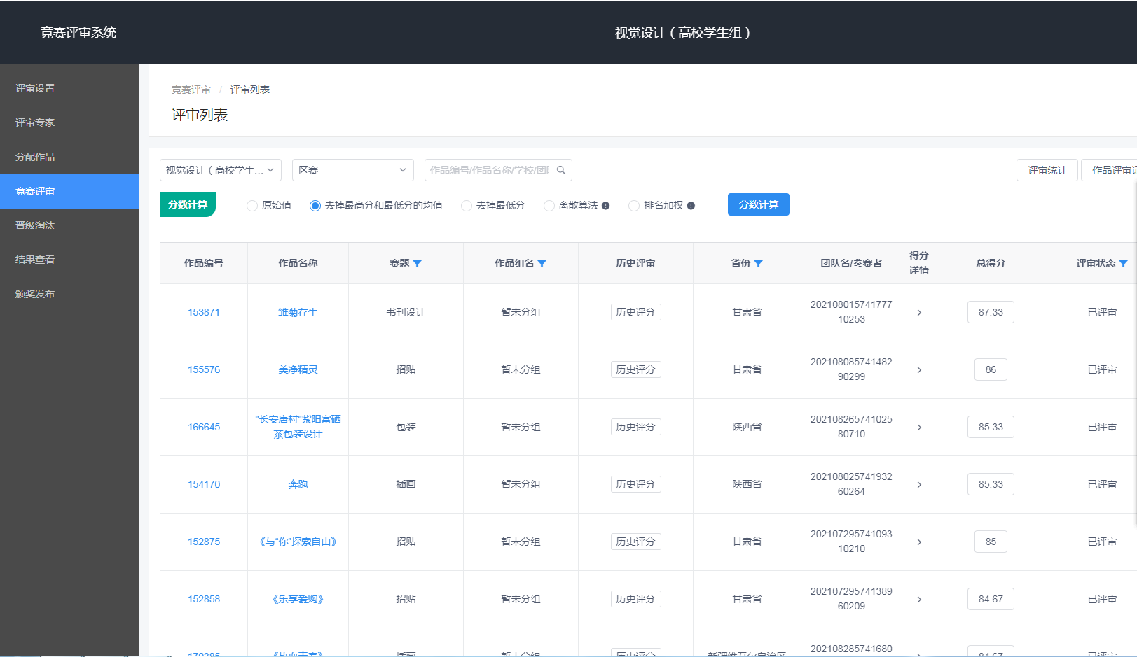 10月6日,根據(jù)《第七屆兩岸新銳設(shè)計競賽·華燦獎評審工作方案》,華燦獎西北賽區(qū)組委會從華燦專家?guī)炖镥噙x出25位專家進(jìn)行視覺設(shè)計類、數(shù)字多媒體設(shè)計類、產(chǎn)品設(shè)計類、工藝美術(shù)類、空間環(huán)境類等5個類別的評選。評審前,西北賽區(qū)組委會主任李志健對這25位評委資格進(jìn)行了審定。經(jīng)過25位評委(其中本賽區(qū)外評委16人,占比64%;全國各類教指委委員評委10人,占比40%)近十天的嚴(yán)格評審,共評選出555件作品晉級全國賽,西北賽區(qū)組委會按照華燦獎每個組別15%(一等獎1%、二等獎4%、三等獎10%)的獲獎比例,評審出本賽區(qū)各組別一、二、三等獎的獲獎,并上報華燦獎全國組委會。