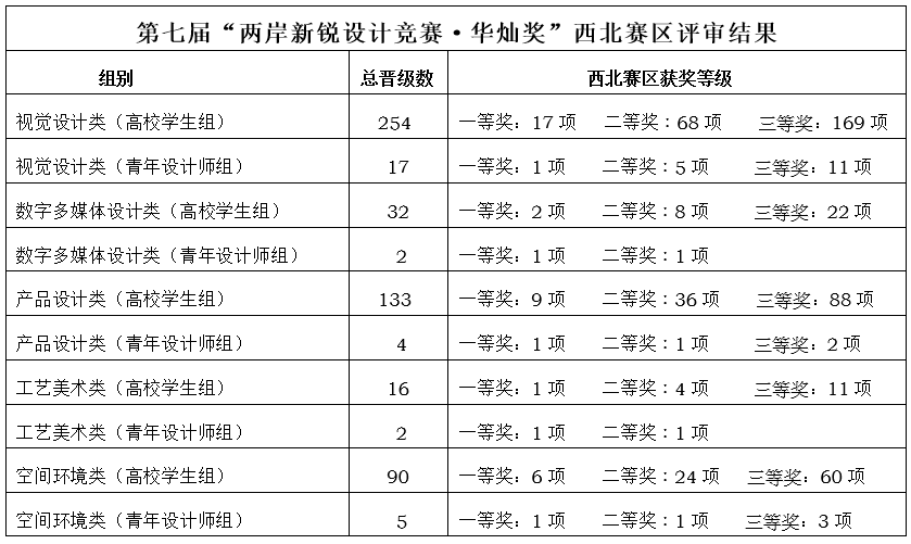 兩岸新銳設(shè)計競賽“華燦獎”是旨在發(fā)現(xiàn)、推介兩岸三地青年設(shè)計師的綜合設(shè)計賽事。2018年起納入教育部“三評一賽”保留項目清單,2019年進(jìn)入“高校學(xué)科競賽評估排行榜”。2021年第七屆“華燦獎”設(shè)置了東北賽區(qū)、華北賽區(qū)、華東賽區(qū)、華中賽區(qū)、華南賽區(qū)、西南賽區(qū)、西北賽區(qū)、香港賽區(qū)、澳門賽區(qū)、臺灣賽區(qū)等賽區(qū)。西北賽區(qū)牽頭單位為陜西科技大學(xué)。