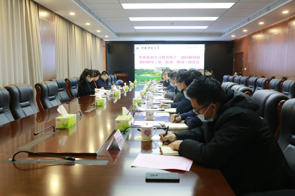 姚書志代表學(xué)校對省委黨史學(xué)習(xí)教育第十二巡回指導(dǎo)組來校指導(dǎo)工作表示歡迎和感謝,并就學(xué)校近年來以黨建引領(lǐng)各項事業(yè)高質(zhì)量發(fā)展的基本情況和學(xué)校黨史學(xué)習(xí)教育第三階段總體思路、安排及推進情況進行了匯報。他表示,學(xué)校高度重視,精心安排部署,分層分類深入學(xué)習(xí)宣傳貫徹黨的十九屆六中全會精神和省委第十三屆十次全會精神,聚焦師生“急難愁盼”,統(tǒng)籌推進“我為師生辦實事”實踐活動,在錨定新時代轉(zhuǎn)型發(fā)展目標、優(yōu)化學(xué)科專業(yè)布局、構(gòu)建開放辦學(xué)格局等方面推出一系列新舉措新做法,不斷深化主題活動實效,努力開創(chuàng)“十四五”高質(zhì)量發(fā)展新局面。下一步,學(xué)校將持續(xù)深入推進“我為師生辦實事”實踐活動,高質(zhì)量開好專題民主生活會,將學(xué)習(xí)成效切實轉(zhuǎn)化為學(xué)校高質(zhì)量發(fā)展的動力。