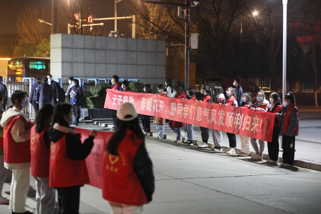 其他9個聯(lián)絡(luò)小組也“平行作戰(zhàn)”,陸續(xù)完成對接。1月18日,校黨委組織部部長楊建顧不上頸椎疼痛,帶著頸托來到學(xué)校門口,把一批批學(xué)生送上返鄉(xiāng)的長途汽車。