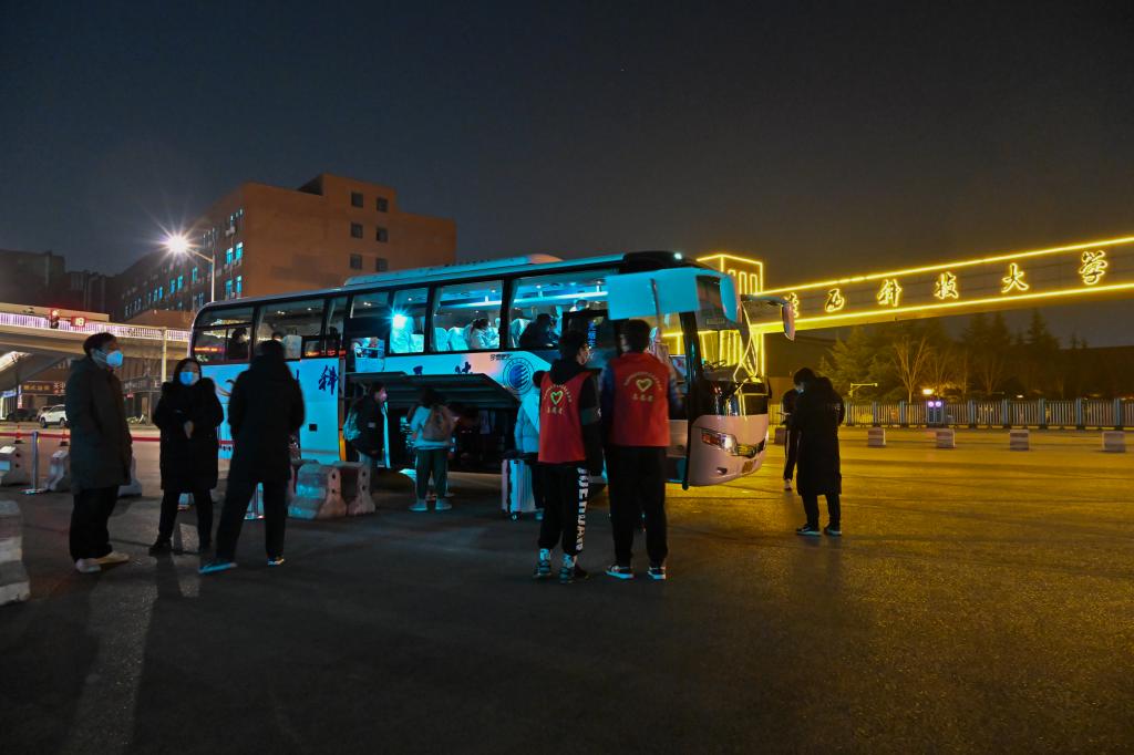 各學(xué)院青年教師也組成一支幾十人的隊(duì)伍,前來幫忙。阿爾斯特學(xué)院王偉偉、材料學(xué)院歐陽海波、張新孟,經(jīng)管學(xué)院邢戰(zhàn)雷、電智學(xué)院任喜偉、姚斌擔(dān)任青年教師跟車調(diào)度員,跟隨每一輛接駁車前往“三站一場”送站。設(shè)藝學(xué)院青年教師常亮從1月17日晚跟隨第一批返鄉(xiāng)學(xué)子開始,已經(jīng)陸續(xù)送走了十幾批學(xué)生,每天早上5點(diǎn)起床,晚上8點(diǎn)回家已經(jīng)成為他的“戰(zhàn)時作息”。