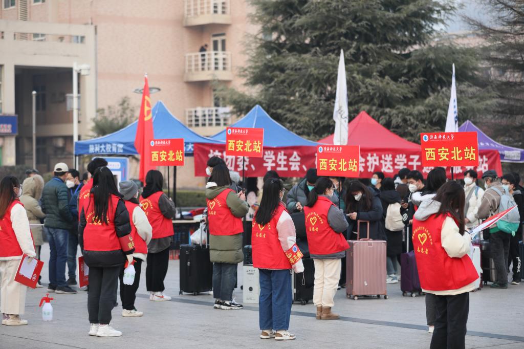 春運(yùn)期間,為了確?!包c(diǎn)對點(diǎn)”把學(xué)生送到家,訾榮祿、喬明哲、張巖3名二級學(xué)院黨委書記挺身而出,率領(lǐng)一批青年教師,分別堅(jiān)守在西安南站、西安火車站、西安北站,和各站地勤人員對接聯(lián)絡(luò),迎接學(xué)校擺渡車,把學(xué)子們安全送進(jìn)候車廳,并解決行程中的突發(fā)狀況。