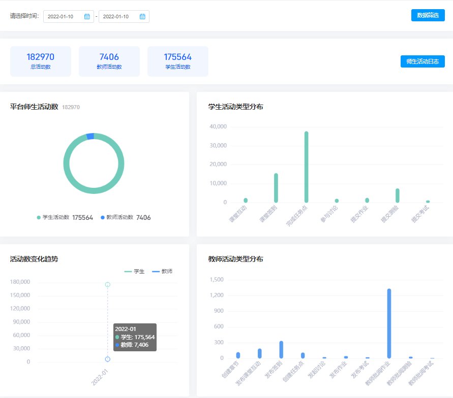 在強有力的服務支持下,任課教師多種教學方式組合上陣,通過超星學習通、雨課堂、慕課堂平臺、騰訊會議、微信、QQ等軟件,熟練運用線上課堂簽到、講解、測試、討論和答疑等多種形式,加強在線互動。據(jù)悉,1月10日至11日雨課堂平臺學生互動15894次,發(fā)布習題7162個;超星平臺學生活動數(shù)331386次,學生完成任務點63996個。