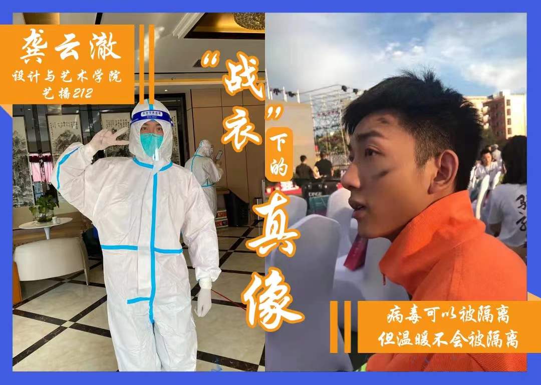全員核酸檢測志愿者、21級本科生龔云澈不僅曾在南、北兩區(qū)的文體館內(nèi)協(xié)助醫(yī)護(hù)人員進(jìn)行現(xiàn)場采樣,還和他們一道外出上門采樣?!白龊怂釞z測志愿者,特別是去給隔離的人做上門核酸,肯定是有風(fēng)險(xiǎn),心里確實(shí)是有一些顧慮和猶豫?!钡匀贿x擇背起沉重的采樣箱、穿起悶熱的防護(hù)服,在校外隔離點(diǎn)、沁園小區(qū)居家隔離戶、學(xué)生公寓隔離宿舍、校醫(yī)院之間步行穿梭,在一些未安裝電梯的樓內(nèi)爬上爬下,繼續(xù)核查錄入掃碼信息,繼續(xù)為醫(yī)護(hù)人員遞棉簽、送試管。口罩、手套,面屏、腳套,這樣的全副武裝讓每一個(gè)平時(shí)簡單的動(dòng)作都要花費(fèi)更大的力氣才能完成,半天下來,人就累得汗流浹背、筋疲力盡。“我們有4名男生志愿者和醫(yī)護(hù)人員共同承擔(dān)校內(nèi)300多名隔離人員及行動(dòng)不便者的歷次核酸采樣工作。他們沒人說害怕,沒人退縮,但上門回來,他們會(huì)半認(rèn)真半開玩笑地說想給自己再加測一次核酸,讓人心疼?!毙G鄨F(tuán)團(tuán)長李書陽動(dòng)情地談起這些承擔(dān)工作危險(xiǎn)系數(shù)最大,難度、強(qiáng)度最高的“戰(zhàn)友”們。