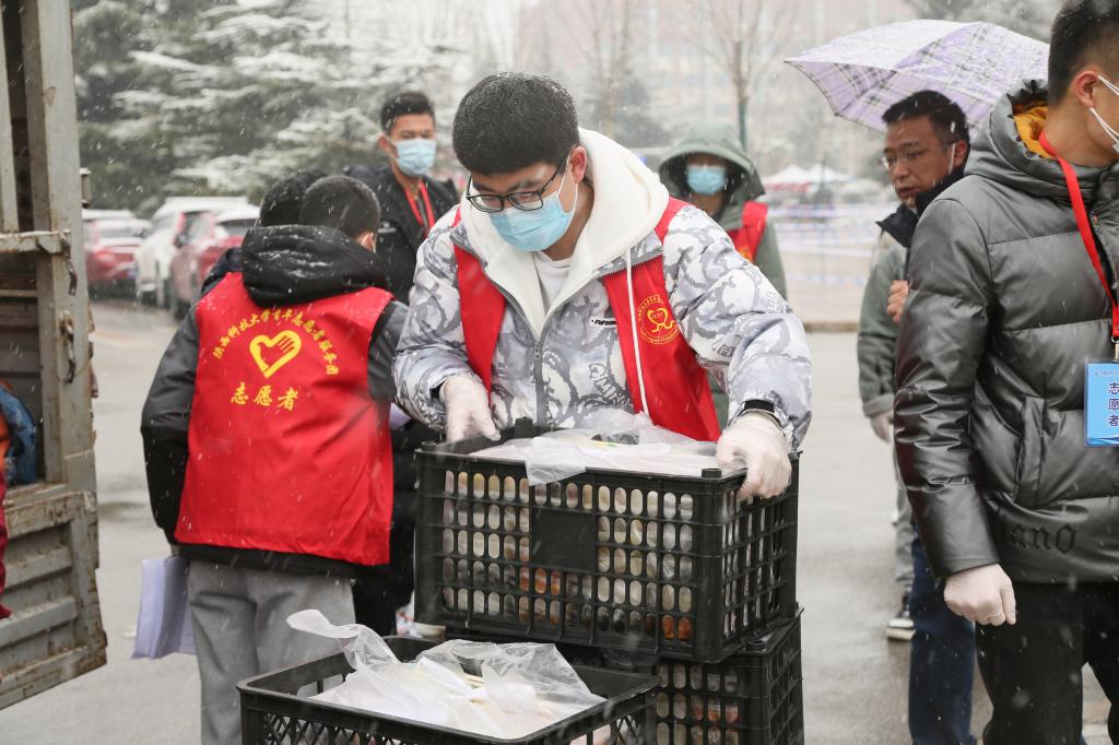 12月25日、26日,研究生抗疫青年突擊隊(duì)的志愿者們在進(jìn)行研招考試的校園里迅速行動(dòng)。中午考試結(jié)束的鈴聲一響,一雙雙風(fēng)雪中凍得僵硬的手穩(wěn)穩(wěn)地搬起一個(gè)又一個(gè)裝滿盒飯的塑料筐,10分鐘內(nèi)飯菜精準(zhǔn)送到110個(gè)校外考生考場的3000余名師生手中,保證每位考生和監(jiān)考老師按時(shí)吃到熱騰騰的飯菜。為了把疫情下校外考生用餐不便的問題解決好,為了確保午飯能準(zhǔn)時(shí)、有序送到每個(gè)考場,志愿者們經(jīng)過多輪培訓(xùn),反復(fù)推敲每一個(gè)環(huán)節(jié)可能遇到的問題,制定了周密詳細(xì)的服務(wù)方案。