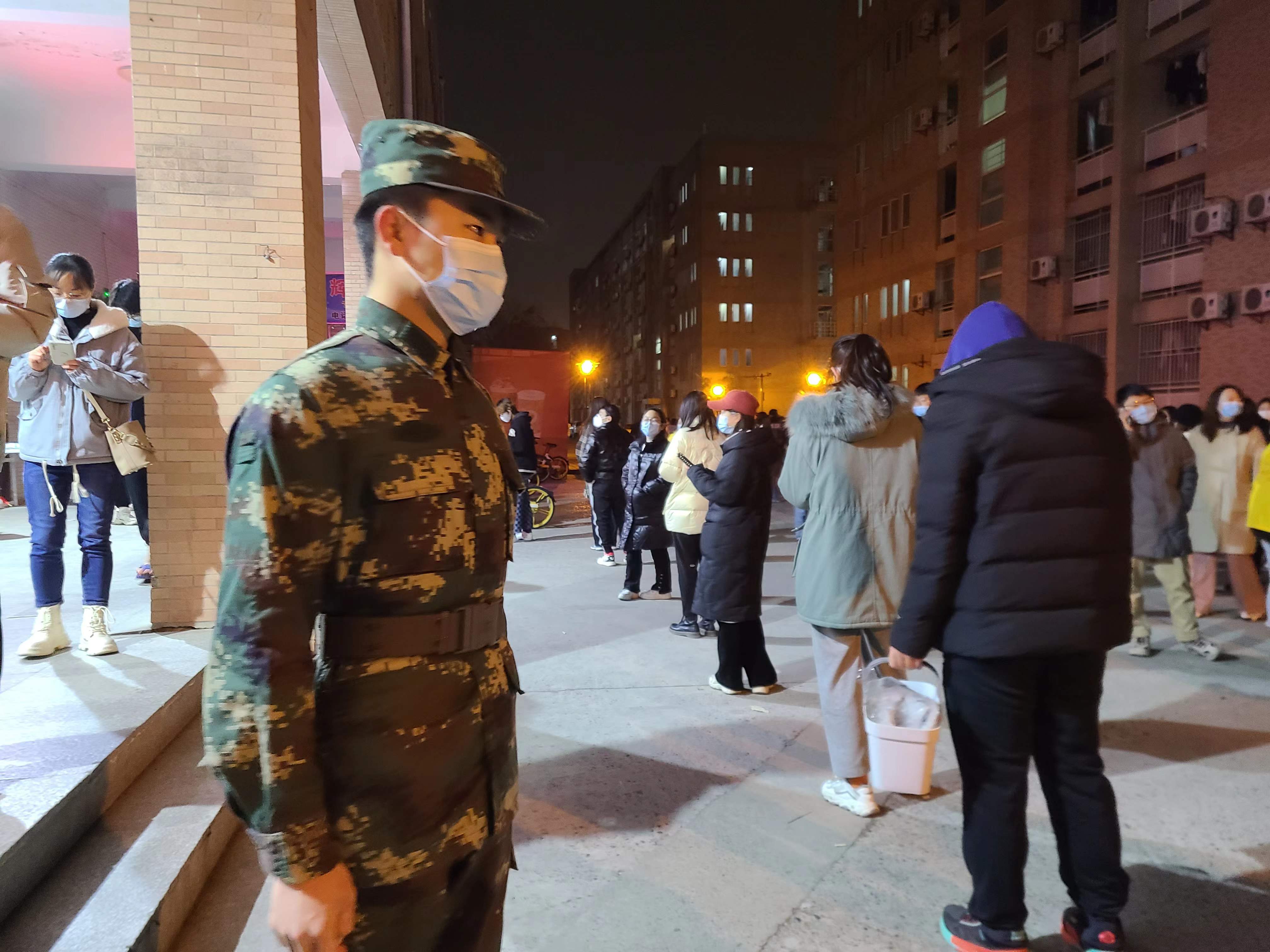 27日晚,退役大學(xué)生士兵張顥淼和戰(zhàn)友楊虎鵬正準(zhǔn)備前往馨園餐廳執(zhí)勤,路過科大超市時(shí),看到門前排起了長隊(duì)、人頭攢動(dòng),同學(xué)們急著為半制動(dòng)管理生活大量“囤貨”。兩人當(dāng)即決定去緊急維持秩序,一人在超市內(nèi)、一人在超市外,從排隊(duì)人群到搶購人群,他們不斷提醒同學(xué)們把口罩戴好,同時(shí)勸導(dǎo)大家不用擔(dān)憂,理性消費(fèi)?!翱吹竭@種場景,擔(dān)心沒人維持秩序會(huì)引發(fā)混亂,我們肯定要做點(diǎn)兒啥,不能視而不見?!睆堫楉祷貞浀馈?/p>