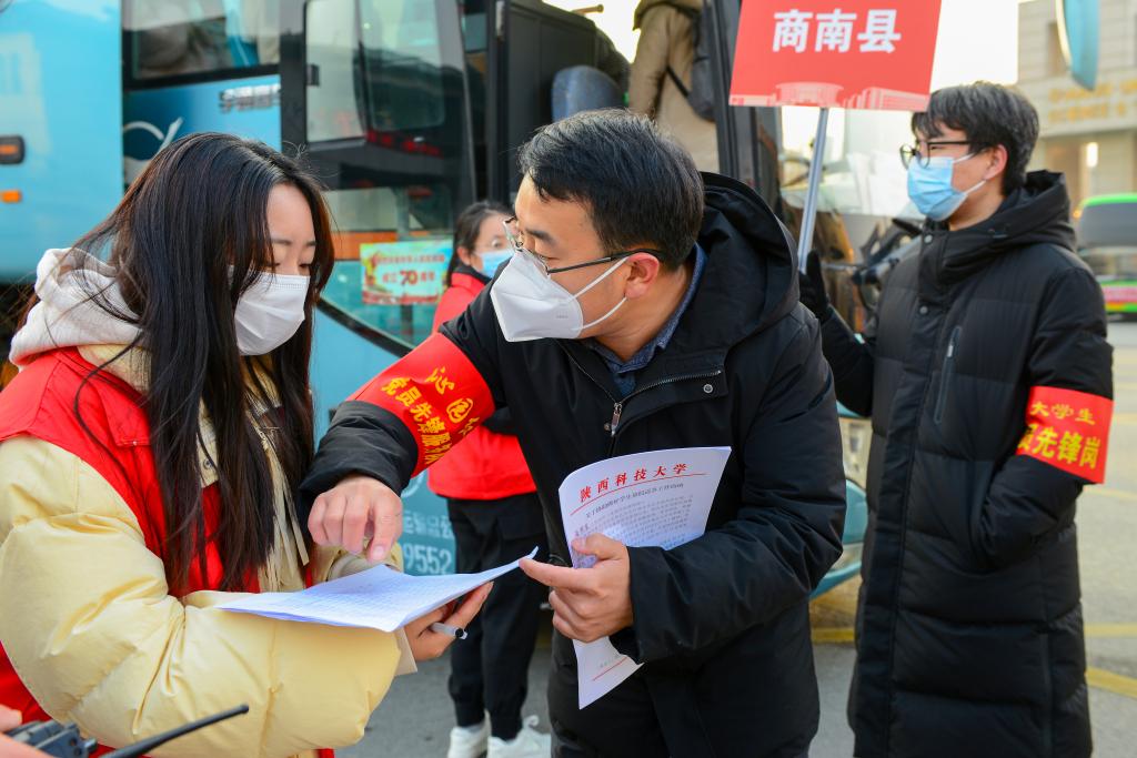 因?yàn)橐咔榉饪丶懈綦x參加不了研究生考試,那就選派教師黨員前往隔離酒店“送考上門”,就地監(jiān)考;擔(dān)心宿舍“半制動”狀態(tài)下不能事無巨細(xì)的做好學(xué)生們的管理服務(wù)工作,那就迅速改變隊(duì)伍格局,下沉公寓一線成立專班,全天候陪伴同學(xué);年關(guān)將近學(xué)生們思鄉(xiāng)之情日漸濃郁,那就動員全校之力建一個(gè)“陜科大客運(yùn)站”,用五天兩夜的攻堅(jiān)戰(zhàn)把每一個(gè)學(xué)生平安送回家。