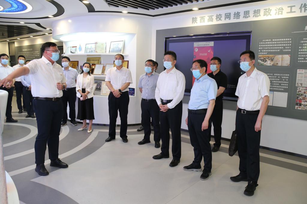 在我校承建的陜西高校網(wǎng)絡(luò)思想政治工作中心(省高校易班發(fā)展中心),方光華現(xiàn)場(chǎng)察看了陜西高校黨委理論學(xué)習(xí)中心組“一學(xué)一做”報(bào)送平臺(tái)、陜西高校思政工作申報(bào)評(píng)審系統(tǒng)、陜西高校思政課程與課程思政資源共建共享平臺(tái)、高校輔導(dǎo)員數(shù)字圖書館等智慧思政教育信息化站群運(yùn)轉(zhuǎn)狀態(tài),詳細(xì)了解了由我校負(fù)責(zé)組織的全省高校師生網(wǎng)絡(luò)尋訪重溫習(xí)近平總書記重要考察足跡活動(dòng)實(shí)施進(jìn)展與我校作為首批試點(diǎn)建設(shè)的全國(guó)高校思政課網(wǎng)絡(luò)學(xué)習(xí)平臺(tái)研發(fā)進(jìn)度。他強(qiáng)調(diào),省中心要深入貫徹全國(guó)、全省高校思想政治工作會(huì)議精神,對(duì)標(biāo)繁榮網(wǎng)絡(luò)文化、推動(dòng)共建落地、開展調(diào)查研究、培養(yǎng)網(wǎng)絡(luò)人才四大職能,進(jìn)一步發(fā)揮統(tǒng)籌區(qū)域網(wǎng)絡(luò)思政“三駕馬車”的重要職責(zé),積極參與全國(guó)高校思政課綜合改革試驗(yàn)區(qū)建設(shè),推動(dòng)全省高校工作水平再上新臺(tái)階。