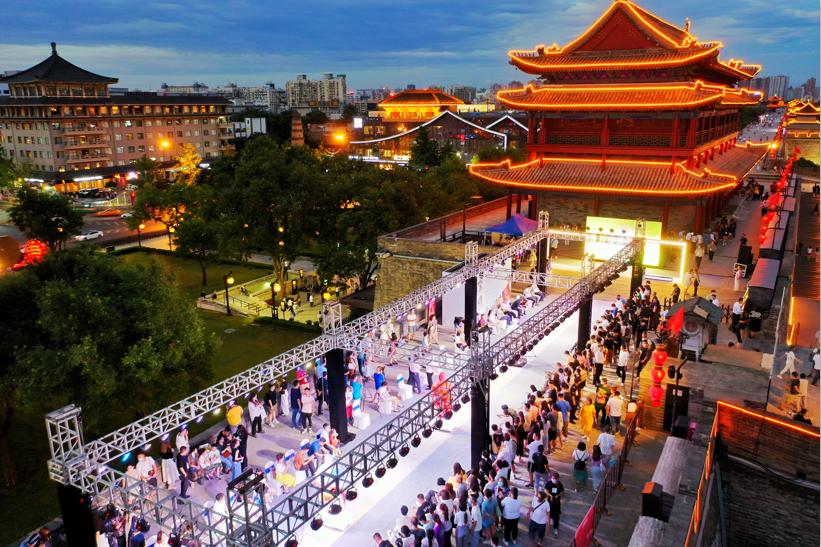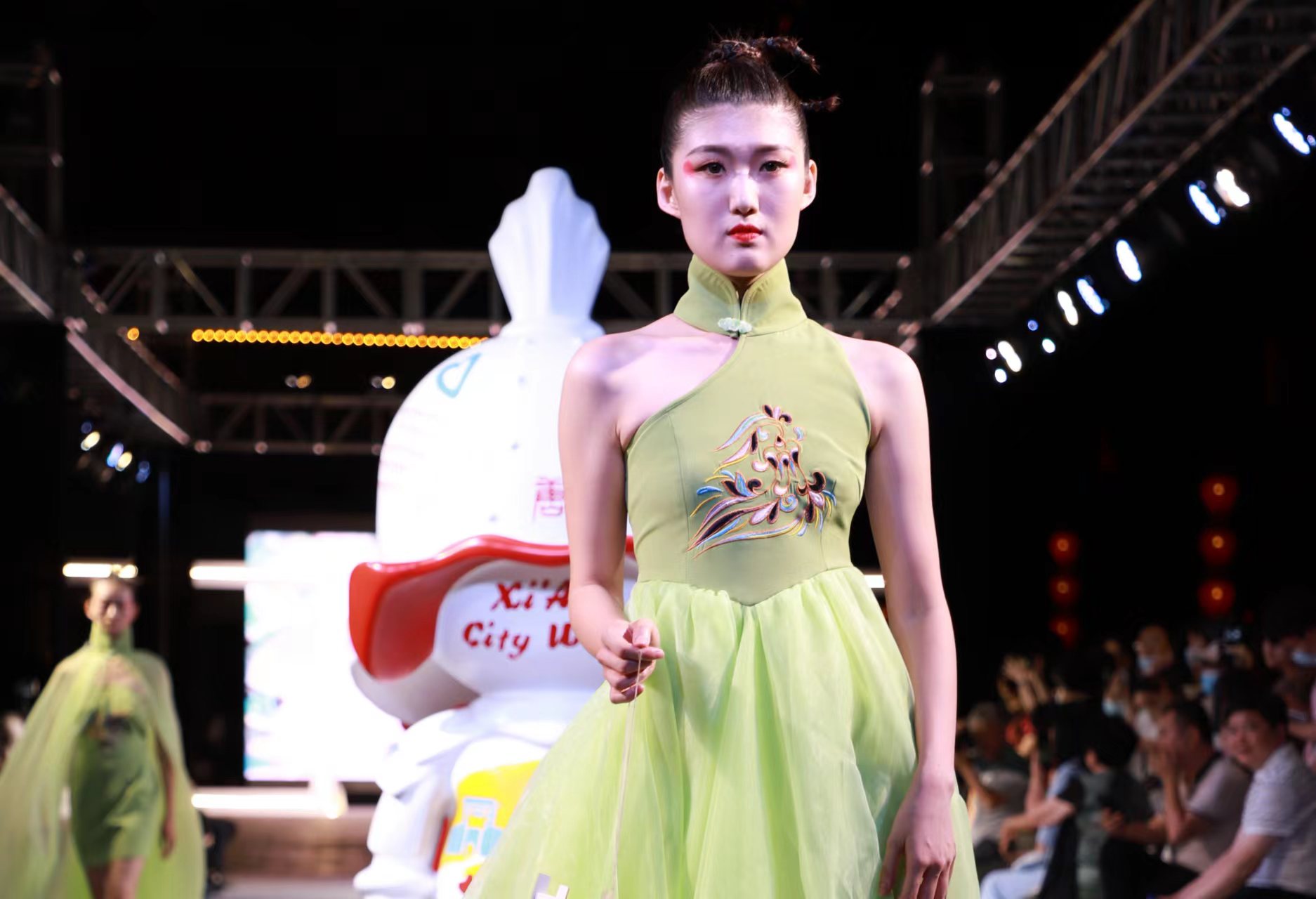 6月20日晚,我校設(shè)計(jì)與藝術(shù)學(xué)院服裝與服飾設(shè)計(jì)專業(yè)的畢業(yè)匯演在西安城墻永寧門城樓舉行。校長李志健、副校長蒲永平出席活動(dòng),陜西省工業(yè)和信息化廳二級(jí)巡視員宋亞超、陜文投集團(tuán)副總經(jīng)理徐晉、陜西服裝學(xué)院院長張莉、西安市文化館副館長王智、西北大學(xué)博物館副館長楊國棟、陜西省民間文藝家協(xié)會(huì)名譽(yù)主席傅功振等近四十位學(xué)界代表、企業(yè)代表、行業(yè)專家、媒體人士以及我校相關(guān)職能部門負(fù)責(zé)人、設(shè)藝學(xué)院班子成員、2022屆服裝與服飾設(shè)計(jì)專業(yè)畢業(yè)生、數(shù)百名游客一起參加了本次服裝秀。