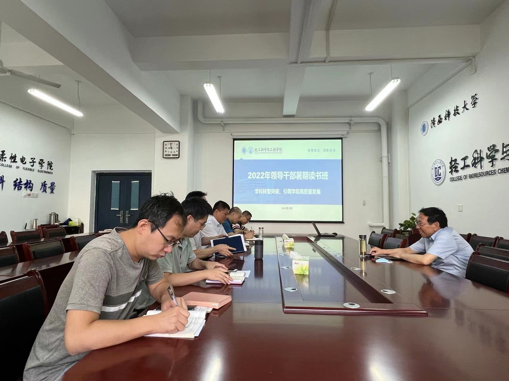 輕工科學(xué)與工程學(xué)院(柔性電子學(xué)院)于9月9日召開2022年領(lǐng)導(dǎo)干部暑期讀書班研討會(huì),重點(diǎn)圍繞“學(xué)科轉(zhuǎn)型突破學(xué)院高質(zhì)量發(fā)展”展開專題研討。校黨委書記姚書志出席并指導(dǎo)。黨辦校辦負(fù)責(zé)人、學(xué)院全體班子成員參加會(huì)議,研討會(huì)由學(xué)院黨委書記李新平主持。