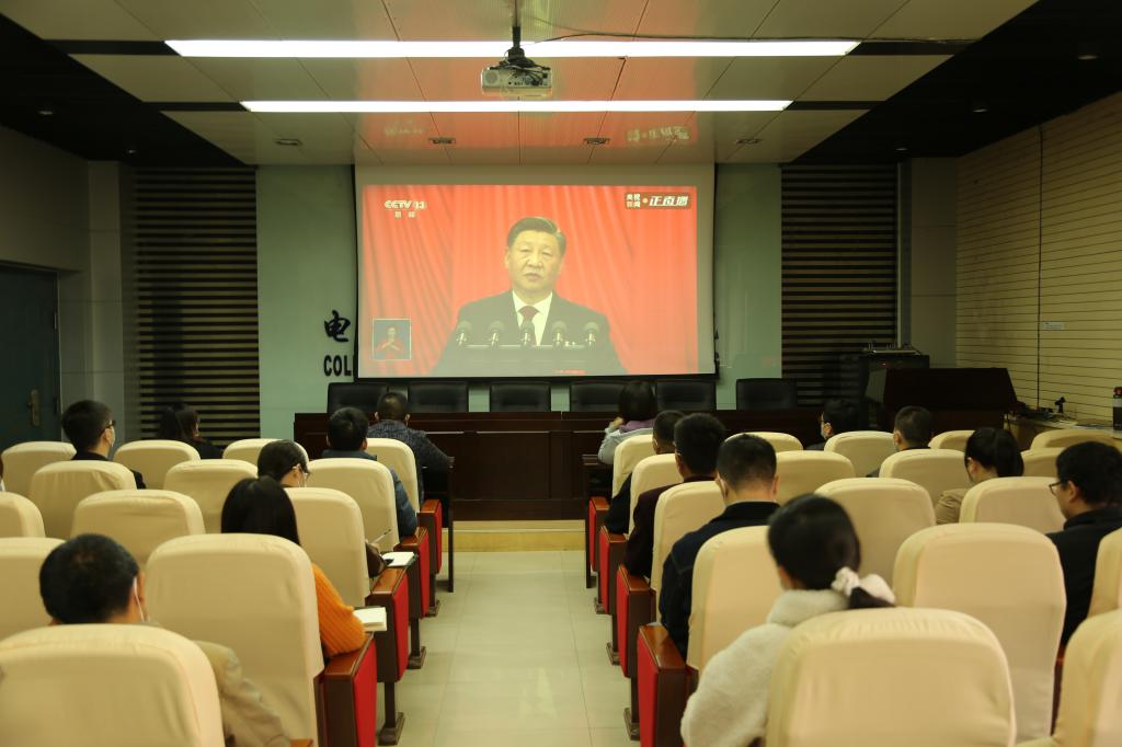 電子信息與人工智能學院、電氣與控制工程學院組織班子、黨委委員、各黨支部書記和輔導員集中收看大會直播