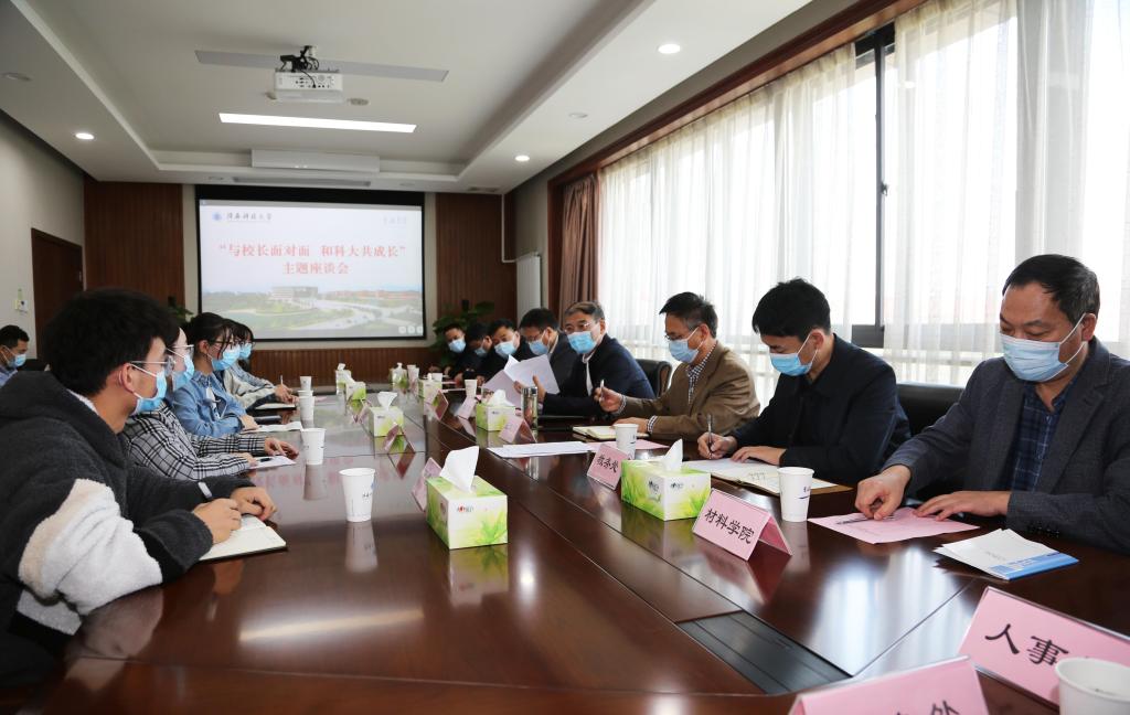 10月21日下午,校長李志健主持召開“與校長面對面,和科大共成長”學(xué)生代表座談會,就學(xué)生關(guān)心的人才培養(yǎng)、通識教育課程設(shè)置等問題與他們展開座談,并與教務(wù)處、人事處、學(xué)工部、團(tuán)委、材料學(xué)院等相關(guān)部門及單位的負(fù)責(zé)人研究制定我校通識教育課程的優(yōu)化方案。副校長王學(xué)川、蒲永平參加會議。