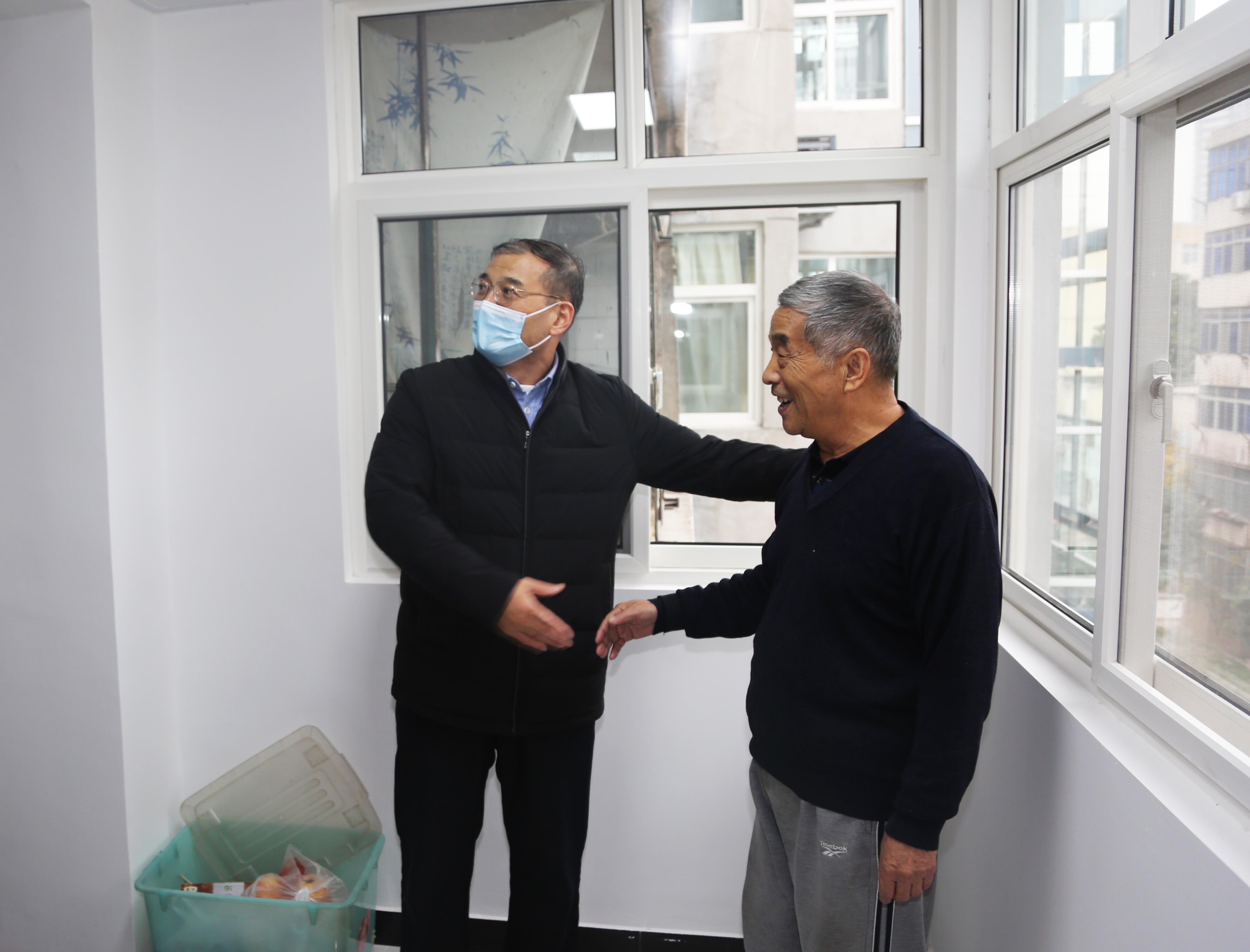 李志健一行到加裝電梯的58個(gè)單元逐一檢查。途中詳細(xì)詢(xún)問(wèn)咸陽(yáng)校區(qū)管委會(huì)、基建處項(xiàng)目開(kāi)展具體情況,了解存在問(wèn)題和后續(xù)進(jìn)度安排等推進(jìn)措施。到已完工的樓棟?rùn)z查時(shí),乘坐加裝電梯深入我校退休教師王軍效、王宏選家中查看加裝電梯后的住宅改造情況,調(diào)研群眾意見(jiàn)。王軍效熱情地握住李志健的手表示:“家屬樓加裝電梯后,一些腿腳不方便的老同志可以經(jīng)常下樓曬太陽(yáng)、散步了,大家的生活幸福指數(shù)得到很大的提升?!蓖鹾赀x表示:“加裝電梯房間改造后,住宅面積增加了、房間更加寬敞明亮了?!?/p>