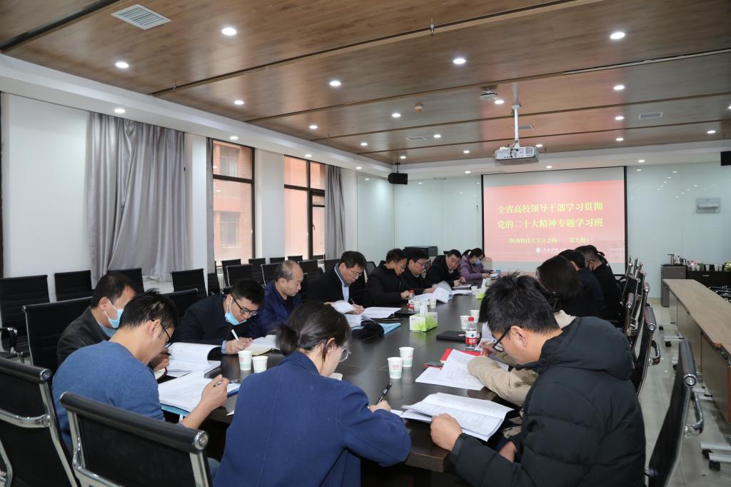為深入學習貫徹黨的二十大精神,引導廣大干部認真領悟黨的二十大提出的新思想新論斷、作出的新部署新要求,切實把思想和行動統一到黨的二十大精神上來,按照省委教育工委、學校黨委有關工作安排,2月20日至24日,我校組織全體中層以上領導干部參加全省高校領導干部學習貫徹黨的二十大精神專題學習班。