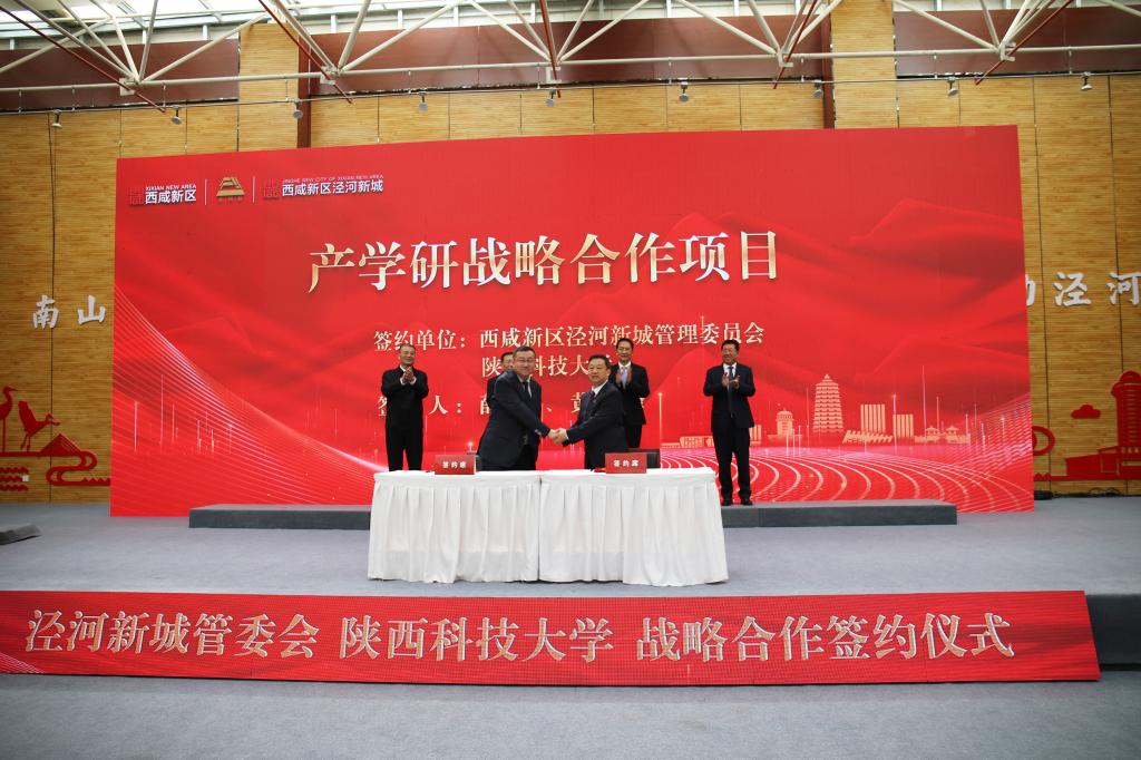 儀式現(xiàn)場,陜西科技大學(xué)與涇河新城管委會簽訂了產(chǎn)學(xué)研戰(zhàn)略合作協(xié)議;我校相關(guān)單位與涇河新城組織和人力資源部、部分轄區(qū)企業(yè)圍繞人才就業(yè)及黨建、茯茶科研、半導(dǎo)體材料科學(xué)、新能源材料、智能家居輕工科學(xué)等領(lǐng)域簽訂項目合作協(xié)議。