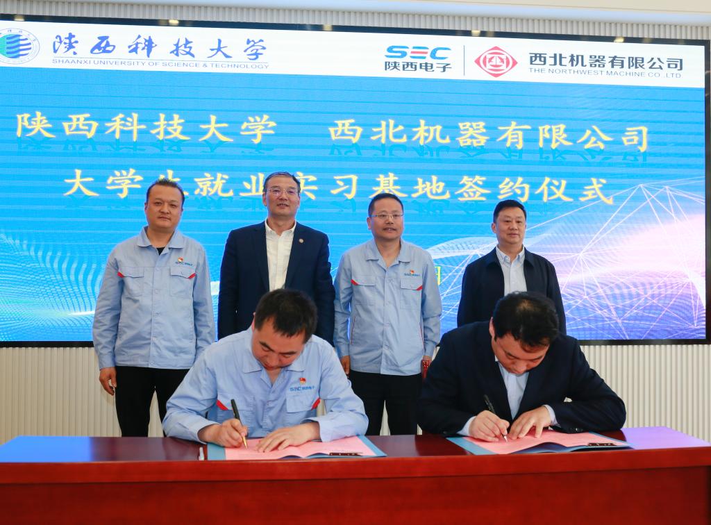 西北機器有限公司人力資源部部長王志岐、我校學生就業(yè)指導中心主任張凱凱代表雙方簽訂“大學生就業(yè)實習基地”協(xié)議。