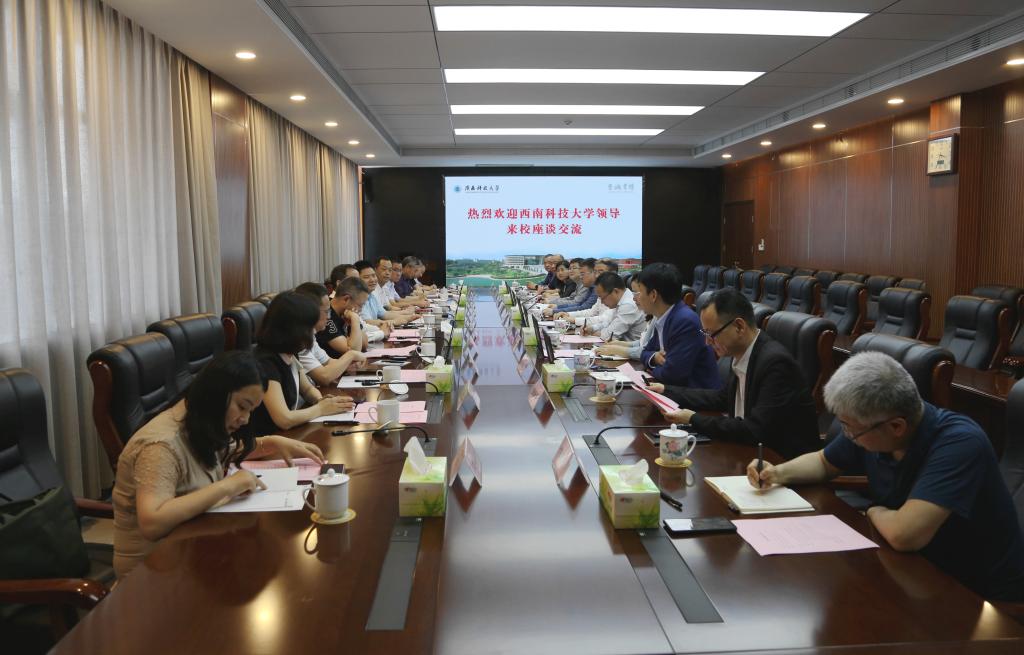 西南科技大學黨辦校辦、發(fā)改處、科創(chuàng)處、學科建設處、人事處、教務處、校友辦以及我校對口業(yè)務單位負責人參加座談交流。