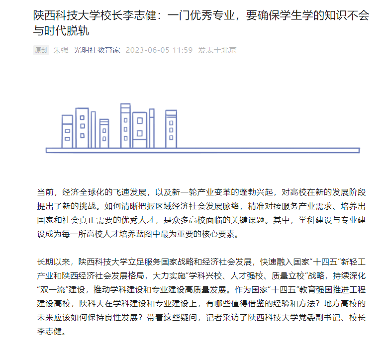 光明社《教育家》官方微信平臺:陜西科技大學校長李志?。阂婚T優(yōu)秀專業(yè),要確保學生學的知識不會與時代脫軌
