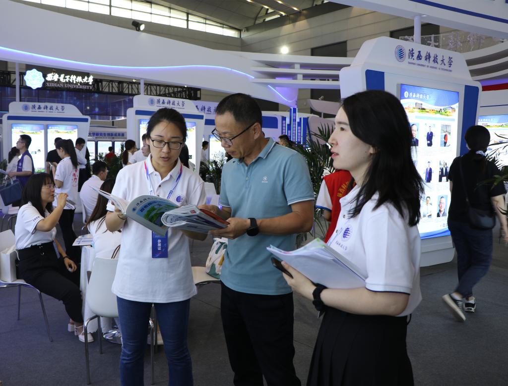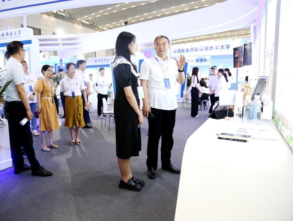 本次展會以“展示辦學成果,促進科技成果轉(zhuǎn)化,提高研究生創(chuàng)新實踐能力,推動陜西高等教育高質(zhì)量發(fā)展”為主題,組織“三展示兩活動”,即高等教育博覽會主題展、高??萍汲晒埂⒀芯可鷦?chuàng)新成果展、校企對接洽談會活動和高校招生咨詢活動,宣傳和展示全省高等教育發(fā)展成就,為校企、校地合作提供交流平臺,為高??萍汲晒D(zhuǎn)化提供展示窗口,為社會公眾提供報考信息咨詢服務(wù)。我校在展會期間通過展板宣傳、視頻展播、實物展示、志愿者講解等方式集中展示學校專業(yè)特色及科研創(chuàng)新實力,并為廣大考生及家長提供面對面權(quán)威招生信息咨詢服務(wù)。