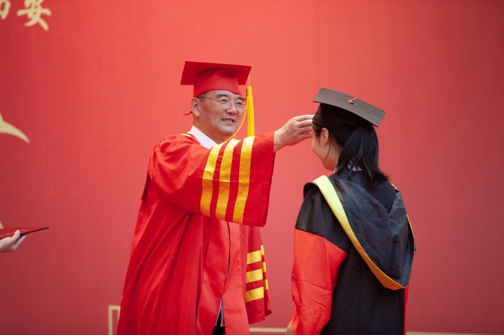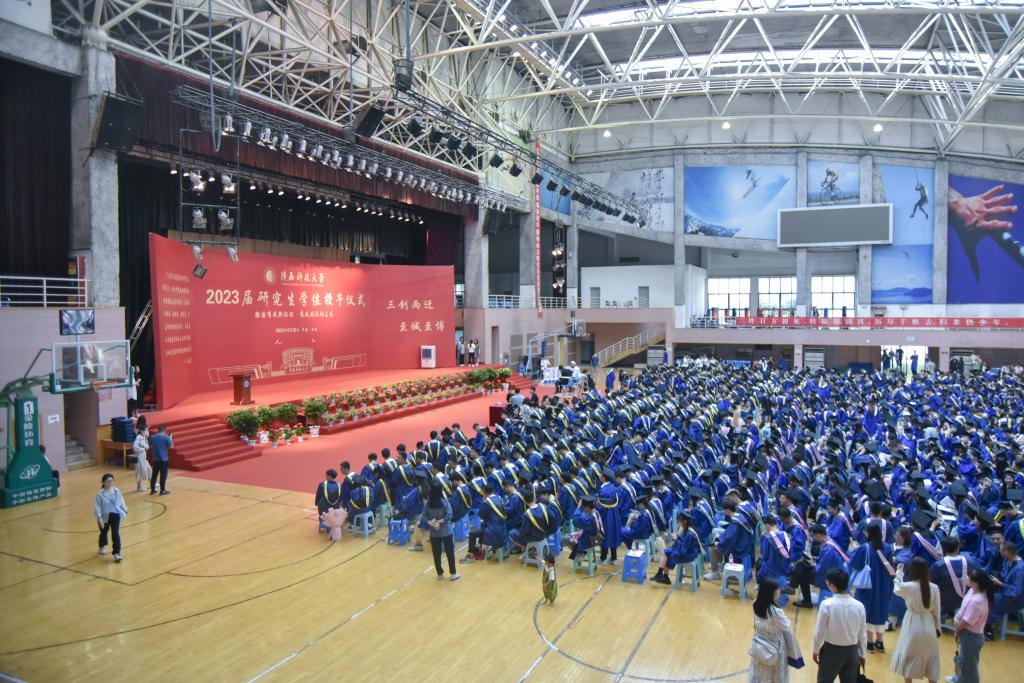 本屆畢業(yè)典禮通過(guò)陜視新聞、陜西科技大學(xué)官方微博、陜西科技大學(xué)官方微信、陜西科技大學(xué)嗶哩嗶哩視頻網(wǎng)站等多個(gè)平臺(tái)進(jìn)行網(wǎng)絡(luò)同步直播,2023屆畢業(yè)生親友、校內(nèi)外師生、海內(nèi)外校友、社會(huì)人士在線“云”觀禮。畢業(yè)典禮后,學(xué)校在文體館舉行了陜西科技大學(xué)2023屆碩士研究生學(xué)位授予儀式。校長(zhǎng)李志健為 1334 名博士研究生、碩士研究生一一撥穗、授證并合影留念。學(xué)校畢業(yè)典禮暨學(xué)位授予儀式后,2023屆本科畢業(yè)生將在所在學(xué)院參加學(xué)位授予儀式。