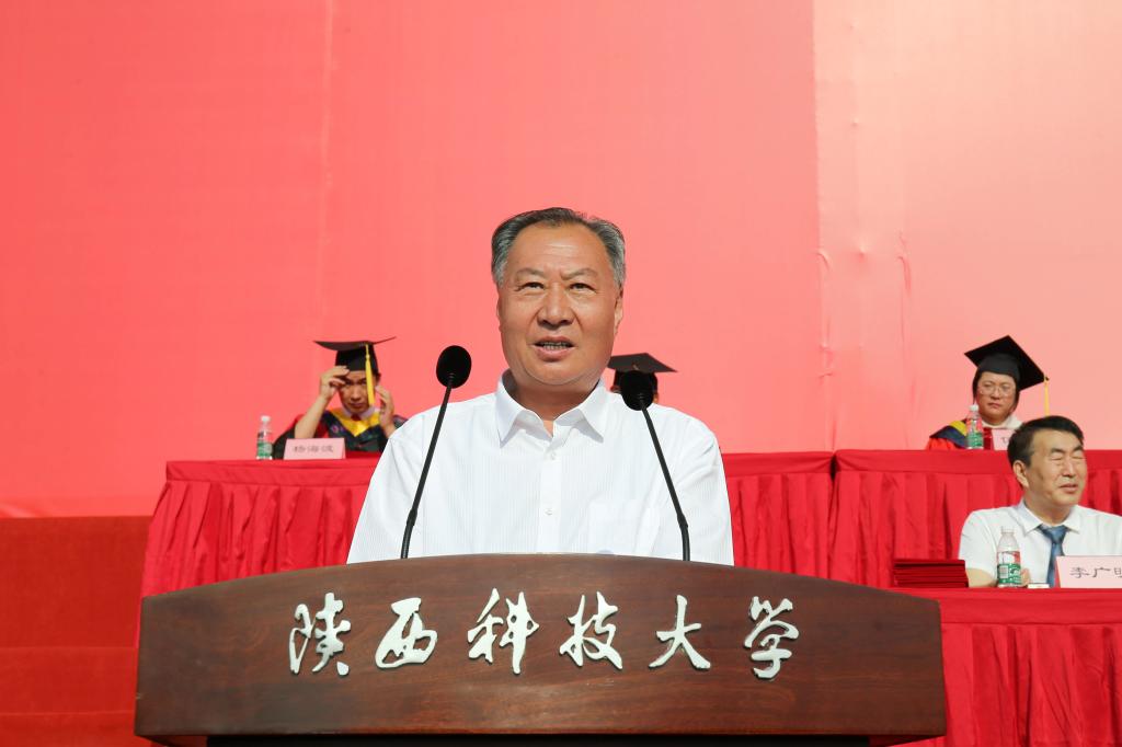 李志健從“情懷:是命運(yùn)與共、精神:是奮進(jìn)力量、擔(dān)當(dāng):是吃苦的人生修煉”三個(gè)方面深情寄語(yǔ)全體畢業(yè)生。他強(qiáng)調(diào),陜科大青年要永遠(yuǎn)聽(tīng)黨話,積極為全面建設(shè)社會(huì)主義現(xiàn)代化國(guó)家貢獻(xiàn)青春力量,自覺(jué)將“三創(chuàng)兩遷”大學(xué)精神融入血脈,在青春的賽道上,跑出屬于自己的別樣風(fēng)景,跑出屬于陜科大青年的良好成績(jī)!
