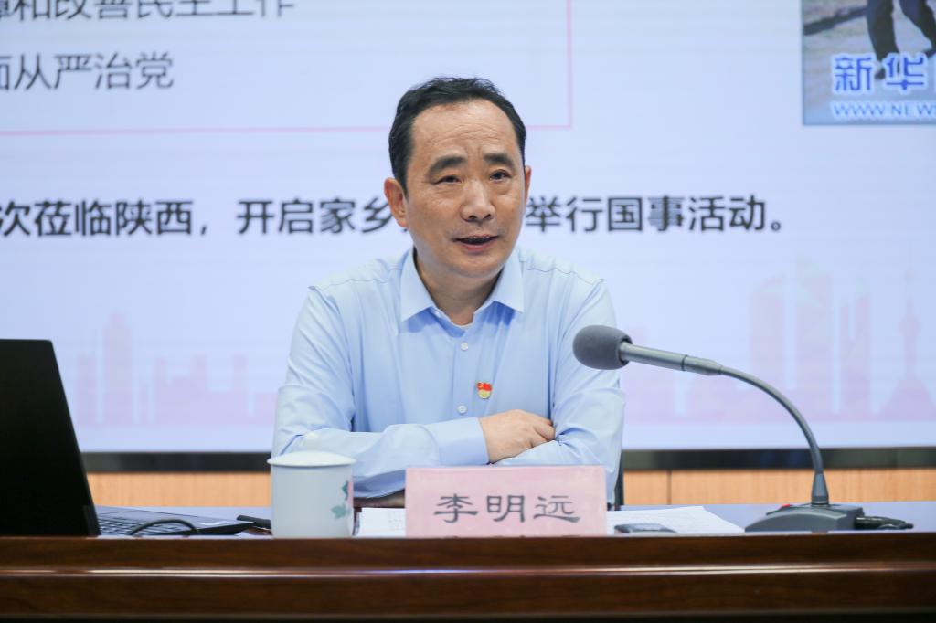 專題黨課上,李明遠結(jié)合學習貫徹習近平總書記在聽取陜西省委和省政府工作匯報時的重要講話精神的收獲和體會,重溫習近平總書記歷次來陜考察重要講話重要指示,全面回顧新時代十年我省各項事業(yè)取得的新成效。他指出,要完整準確全面貫徹習近平總書記歷次來陜考察重要講話重要指示,堅定捍衛(wèi)“兩個確立”、堅決做到“兩個維護”,在解放思想中順勢而為、在改革創(chuàng)新中乘勢而上、在再接再厲中馭勢而進,矢志為強國建設、民族復興貢獻陜西擔當和陜西作為。