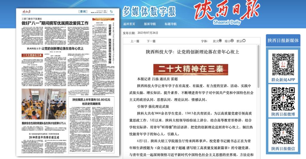 陜西科技大學讓青年學子在有高度、有溫度、有力度的宣講、活動、實踐中武裝頭腦、增長知識、提升素養(yǎng),不斷增進青年學子對中國共產(chǎn)黨和中國特色社會主義的政治認同、思想認同、理論認同、情感認同,讓黨的創(chuàng)新理論落在青年心坎上。