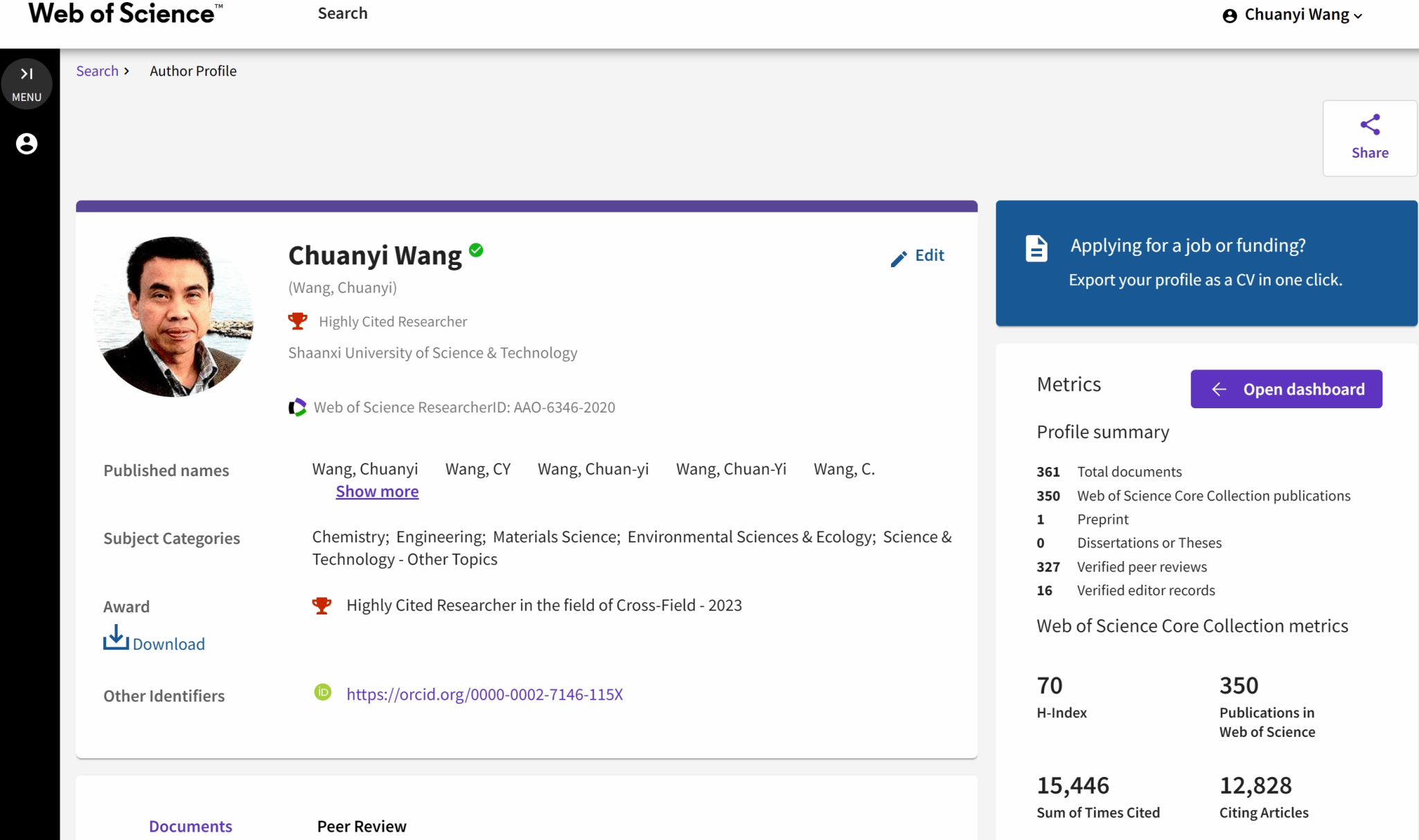 科睿唯安的“全球高被引科學(xué)家”名單每年評(píng)選一次,旨在表彰對(duì)所在學(xué)科做出重大貢獻(xiàn)的具有全球影響力的自然科學(xué)家和社會(huì)科學(xué)家。據(jù)悉,今年共有6849位研究人員共7125人次入選全球高被引科學(xué)家名單,這些人僅占全球研究人員的千分之一。入選名單的總?cè)舜螖?shù)超過(guò)了入選科學(xué)家的總數(shù)是由于一些研究人員在一個(gè)以上ESI學(xué)科獲得認(rèn)可。今年名單是根據(jù)2012年1月至2022年12月的11年期間所發(fā)表的高被引論文數(shù)量遴選得出。遴選方法基于科睿唯安科學(xué)信息研究所文獻(xiàn)計(jì)量專家對(duì)SCIE和SSCI收錄期刊中高被引論文數(shù)據(jù)進(jìn)行嚴(yán)格評(píng)估和整理,覆蓋各學(xué)科18.85 萬(wàn)篇高被引論文 (參見:https://clarivate.com.cn/2023/11/15/hcr2023/)。