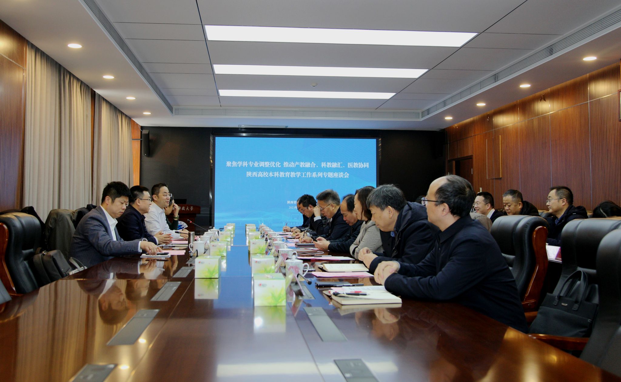 12月28日,教育廳組織的“聚焦學(xué)科專業(yè)調(diào)整優(yōu)化,推動(dòng)產(chǎn)教融合、科教融匯、醫(yī)教協(xié)同”高校本科教育教學(xué)工作系列專題座談會(huì)在我校召開。中共陜西省委教育工作委員會(huì)委員、省教育廳副廳長(zhǎng)何玉麒出席會(huì)議并講話,教育廳高等教育處處長(zhǎng)高強(qiáng)主持會(huì)議。西北農(nóng)林科技大學(xué)、長(zhǎng)安大學(xué)、西北大學(xué)和我校等八所高校分管本科教育教學(xué)工作副校長(zhǎng)、本科教育教學(xué)管理部門主要負(fù)責(zé)人參加會(huì)議。
