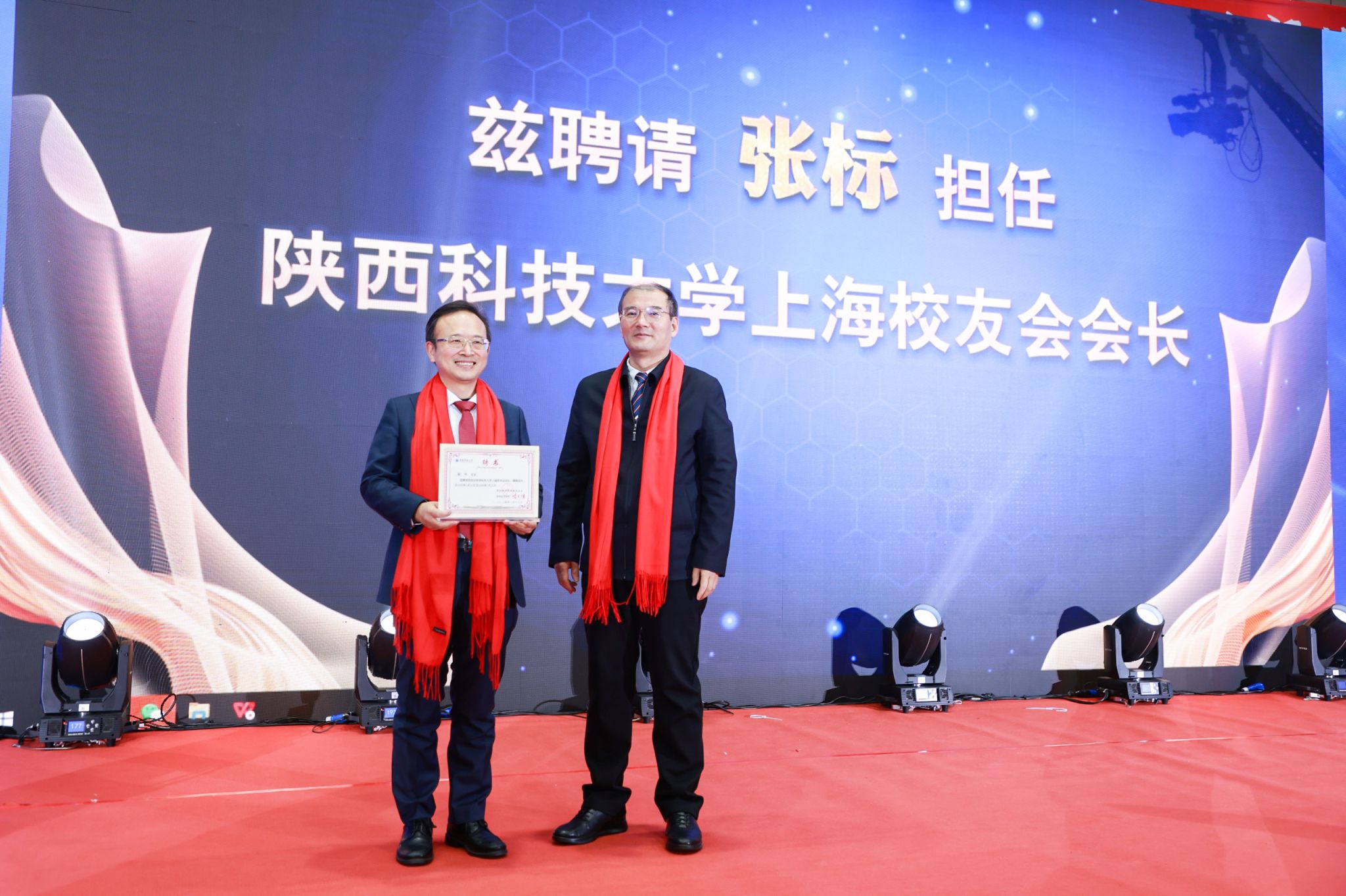 李志健為上海校友會(huì)會(huì)長(zhǎng)張標(biāo)(搪瓷89)頒發(fā)聘書(shū)。