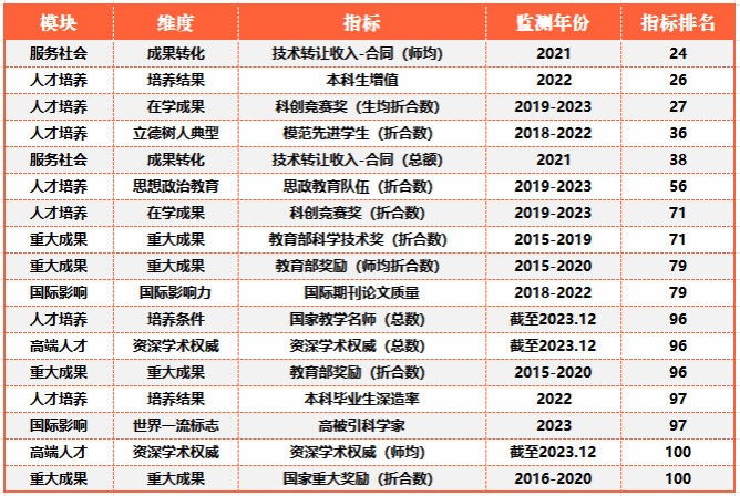 我校2024年“軟科中國大學(xué)”排名中位列全國前100位的指標(biāo)