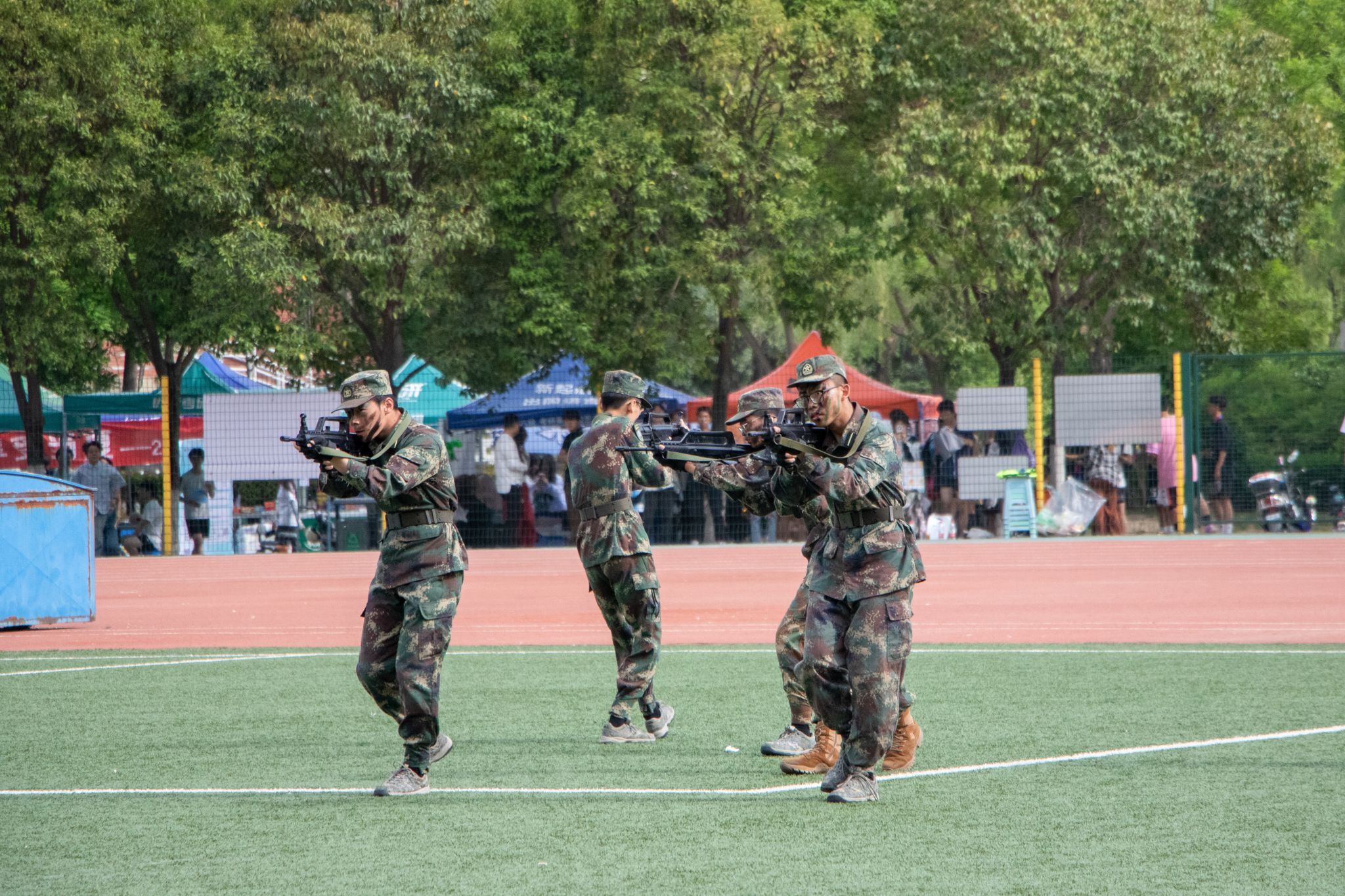 閉幕式上,我校十佳社團之一“夢幻特衛(wèi)隊”進行《夢幻迷彩 鋼鐵特衛(wèi)》軍事風采展示,通過戰(zhàn)術隊形、摔跤格斗等戰(zhàn)斗科目表演,展現(xiàn)了頑強的戰(zhàn)斗作風和“磨礪意志、挑戰(zhàn)自我”的信念。